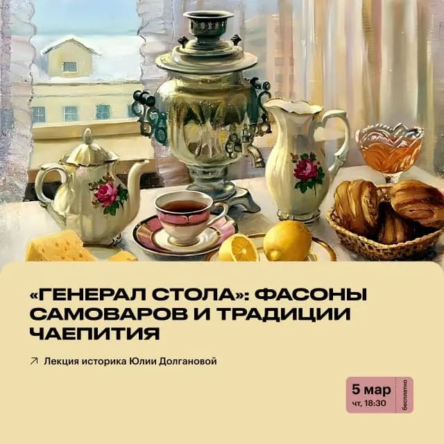 На лекции поговорим об истории появления маленького, но удивительного изобретения — самовара. Рассмотрим разные фасоны этого удивительного «пузатого водогрея» и узнаем, почему некоторые самовары называются «эгоистами». Также поговорим о том, как появление самовара повлияло на традиции чаепития в России.