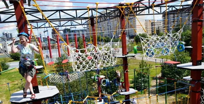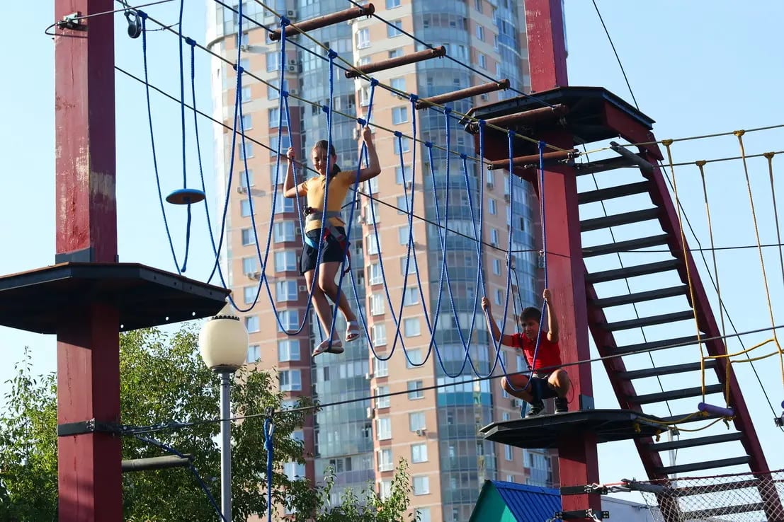 С первого шага на площадку тебя обволакивает свежий воздух Ботанического микрорайона, шелест листвы и лёгкий ветерок. Возникает ощущение полной свободы и приключения. Три маршрута разной сложности (от низких 1,3 м для самых маленьких до высотных 7 метров) манят к покорению: лестницы вверх по стволам, подвесные мосты, качающиеся препятствия, тарзанки и сетки — каждый элемент заставляет сердце биться чаще от восторга и адреналина. Здесь всё живое и динамичное: скрип верёвок, щелчки карабинов, детские крики радости и поддержка снизу. Атмосфера настоящего приключения в стиле «Аватар», где каждый преодолевает страх и открывает в себе смелость. Лес вокруг кажется загадочным, а с высоты открывается красивый вид на зелень и город. Профессиональные инструкторы всегда рядом. Приходите всей семьёй и почувствуйте настоящий полёт над землёй!