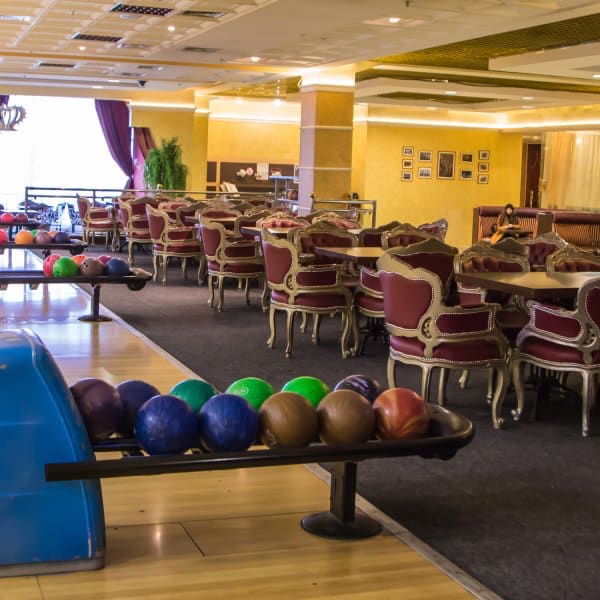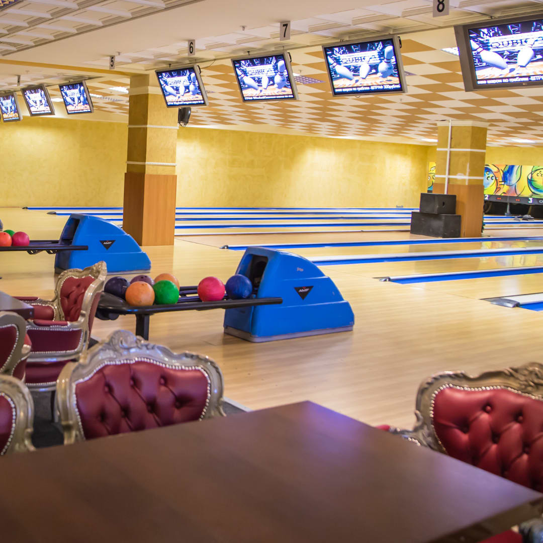 Площадка боулинга оснащена 16 стандартными дорожками + 2 VIP-дорожками с повышенным уровнем комфорта и приватности. Играть можно как индивидуально, так и большими командами — одновременно на нескольких дорожках. Это позволяет собрать всю компанию друзей и устроить настоящий турнир с кубками, призами и общим азартом! После активной игры всех ждёт уютная зона отдыха: удобные столы с мягкими креслами, где можно расслабиться, перекусить пиццей, бургерами, картошкой фри, десертами и напитками. Здесь комфортно разместятся и дети, и родители. Можно заказать полноценное меню, украсить стол шарами и наслаждаться заслуженным отдыхом.