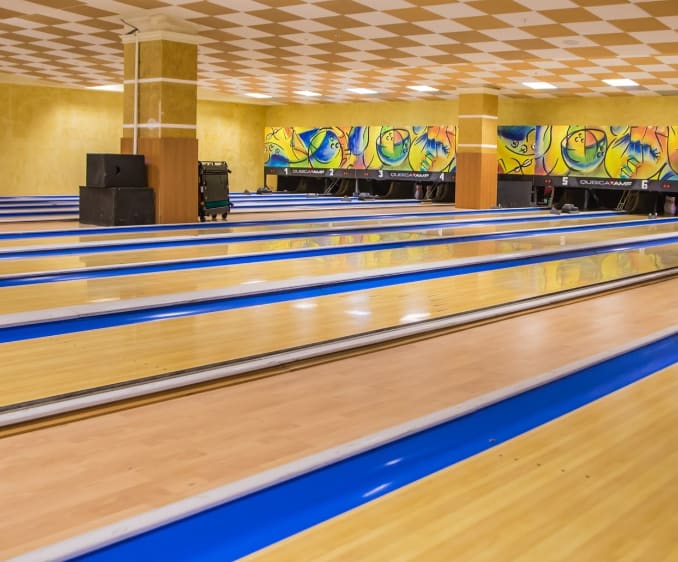 Площадка боулинга оснащена 16 стандартными дорожками + 2 VIP-дорожками с повышенным уровнем комфорта и приватности.
