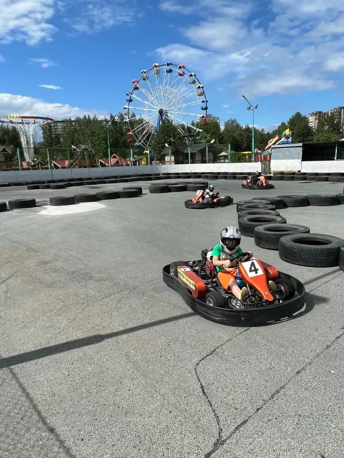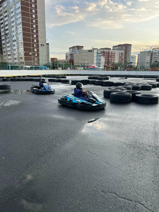 С первого шага внутрь вас захватывает мощная гоночная энергия: рёв моторов, запах жжёной резины, яркие вспышки подсветки на трассе и крики «Газ в пол!» от пилотов. Просторная трасса Formula (150–370 метров с техничными поворотами) ждёт, чтобы вы почувствовали скорость, адреналин и вкус победы на каждом круге. Пространство динамичное и профессиональное: асфальт блестит под огнями, барьеры надёжно защищают, а современные карты (детские и взрослые) дают ощущение Формулы-1 даже новичкам. Здесь нет спокойствия — только пульс соревнований, обгоны на пределе и эйфория от быстрого прохождения круга за 30 секунд! Идеально для семейных заездов, дней рождения с гоночным шоу и корпоративов, где каждый становится пилотом. Приходите и ощутите настоящий Formula-драйв!