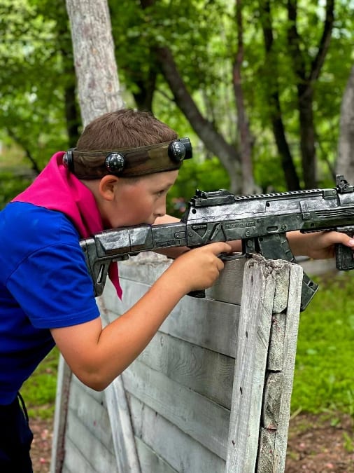 Это не просто беготня — это полноценная тактическая битва, где дети разрабатывают свою стратегию, учатся работать в команде, прячутся, атакуют и чувствуют себя настоящими командирами! После интенсивной игры всех ждёт уютное застолье с тортом, пиццей и любимыми напитками — идеальное завершение праздника. Что представляет собой площадка? Арена большая и продуманная до мелочей: просторное поле с множеством укрытий, баррикад, естественных и искусственных позиций. Здесь можно реализовать абсолютно любой сценарий. Много отличных мест для засады, обстрела или надёжного укрытия. Рядом находится стадион, где удобно расположены туалеты — всё под рукой. Для максимального комфорта игроков предусмотрены тёплые раздевалки на большую группу — можно спокойно переодеться и подготовиться к бою. А после игры — просторные тёплые беседки, где родители и дети устраивают настоящий праздничный пикник. Здесь можно расставить столы, украсить всё шарами и наслаждаться заслуженным отдыхом!