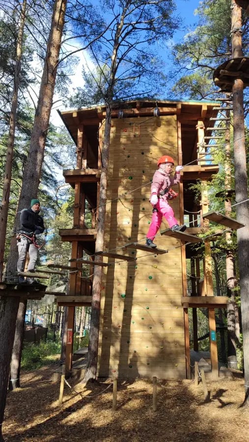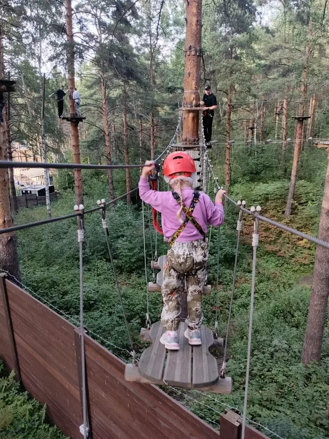 С первого шага в Уктусский лесопарк тебя обволакивает свежий хвойный воздух, шелест кроны и ощущение масштаба. Здесь 7 трасс, более 100 разнообразных заданий и троллеи длиной до 110 метров! От спокойных жёлтых маршрутов для семейной прогулки до экстремальных красных, где адреналин зашкаливает от высоты и скорости. Здесь всё пульсирует жизнью: скрип верёвок, свист троллея, крики восторга и поддержки. Атмосфера настоящего вызова и свободы. Лес вокруг кажется бесконечным, деревья — гигантскими стражами, а с высоты открывается потрясающий вид на зелень Уктуса. Неограниченное количество проходов за один визит. Приходите всей семьёй и покоряйте новые вершины снова и снова!