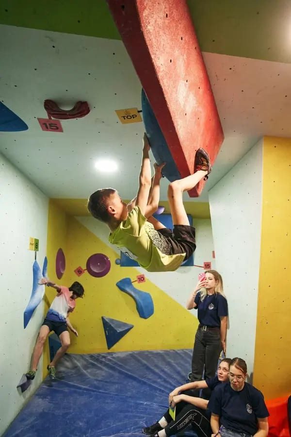 С первого шага внутрь вас встречает мощная, мотивирующая энергия: просторная, открытая зона, рассчитанная на одновременное лазание до 60 юных спортсменов. Здесь нет тесноты, только свобода движения, стук рук по ярким зацепам и радостные крики «Я долез!» с вершины. Пространство наполнено динамикой: вертикальные стены с множеством разноцветных зацепов создают ощущение настоящей скалы, полной вызовов и открытий, а мягкие страховочные маты внизу дают полную уверенность и безопасность. Воздух вибрирует от детского восторга, смеха и командного духа. Дети чувствуют прилив сил, развивают ловкость, силу и уверенность в себе с каждым подъёмом. Это не просто лазание — это маленькие победы, адреналин и огромная порция позитива!