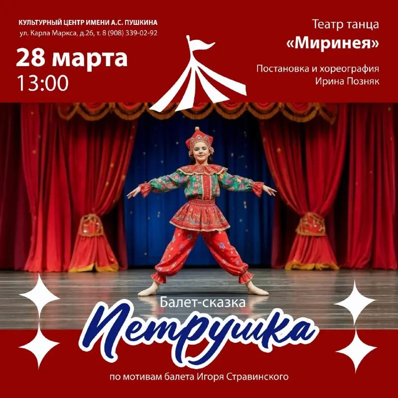 🎶 Под музыку Игоря Стравинского юные танцоры театра танца «Миринея» расскажут эту трогательную и драматичную историю языком пластики. Яркая хореография, необычные костюмы и выразительные образы создают настоящее сценическое приключение для зрителей всех возрастов.