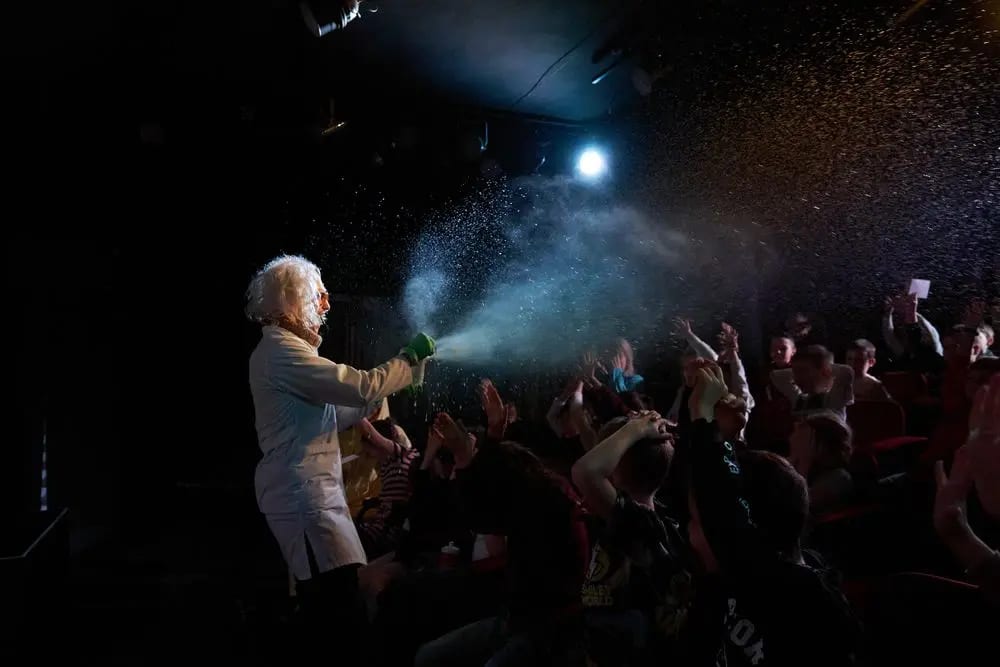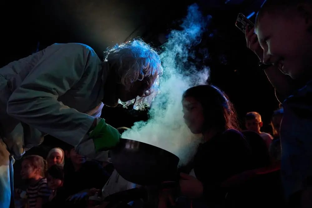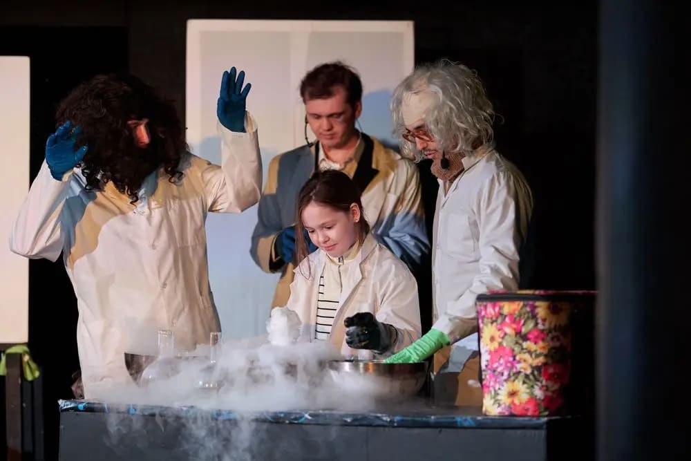 Яркое интерактивное научно-познавательное шоу. Юным зрителям представиться возможность посетить необычный урок химии и физики, на котором они окунутся в мир сумасшедших взрывов, опытов, научных открытий и фантастических экспериментов, а так же «почудить» с ожившими учеными Альбертом Энштейном и Дмитрием Менделеевым. Сложные предметы «физика» и «химия» станут простыми и понятными, а главное станут любимыми уроками наших зрителей!
