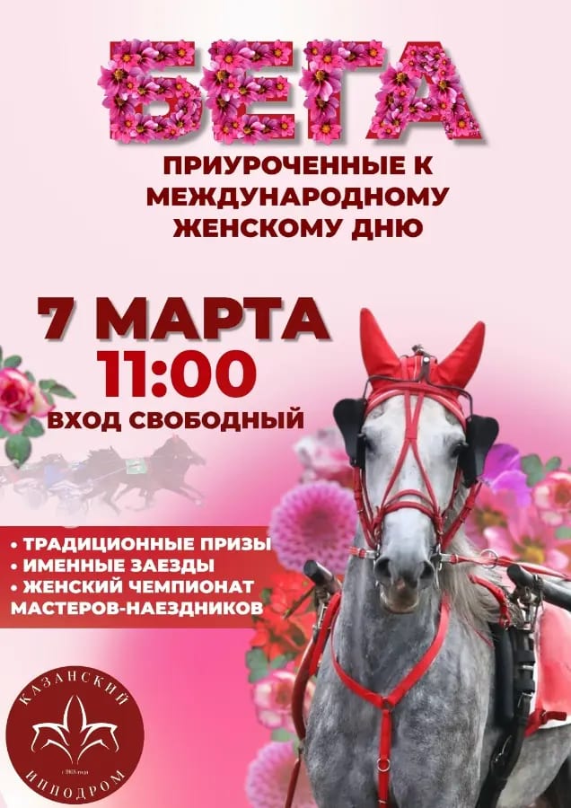 В этот день будут разыграны традиционные призы имени Новотомниковского конного завода, «Рангоута» и «Гондолы»Также дополнят программу дня два именных заезда, а также интригующие призы в честь международного женского дня: участие в них примут только девушки! Представительницы прекрасного пола поборются за победу в трех заездах.✨