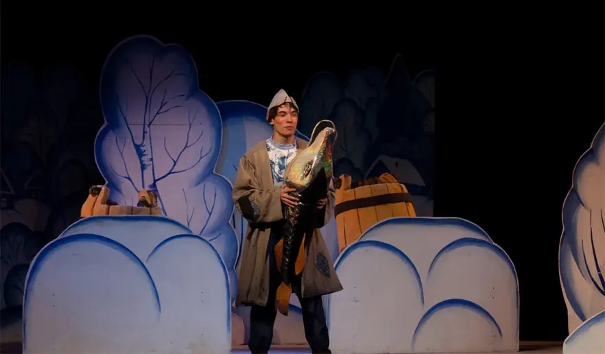Емеля в сказке совсем не лежебока. Он дружелюбный и находчивый, всегда найдёт выход из любой ситуации. Этот яркий, весёлый спектакль с песнями, танцами и печью в голубых узорах станет незабываемым зрелищем для Вас и Ваших детей!
