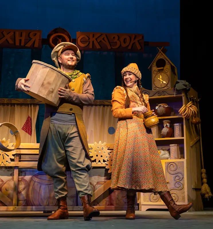В основу спектакля легли известные и всеми любимые с детства русские народные сказки: «Курочка Ряба», «Колобок» и «Репка».