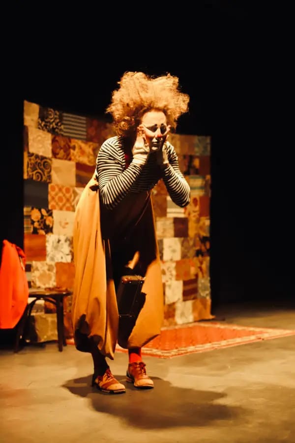 Спектакль про бродячего артиста-клоуна — эдакого льва Бонифация из мультика, которого все время окружают дети и требуют: «Ещё! Ещё!».