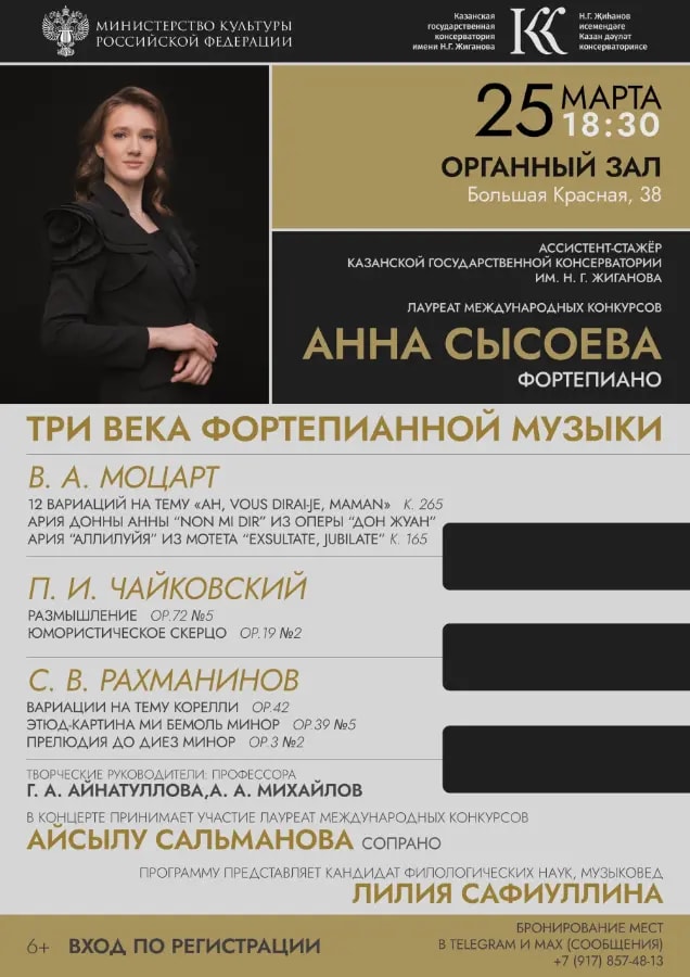 На концерте прозвучит музыка выдающихся композиторов, как В. А. Моцарт, П. И. Чайковский, С. В. Рахманинов.