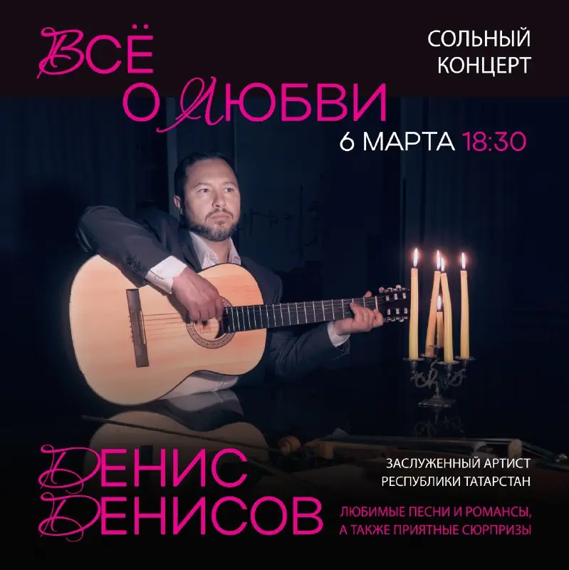 от 450 ₽Концерты0Сольный концерт Дениса Денисова6 марта18:30 — 20:00улица Карла Маркса, 26от 450 ₽Купить
