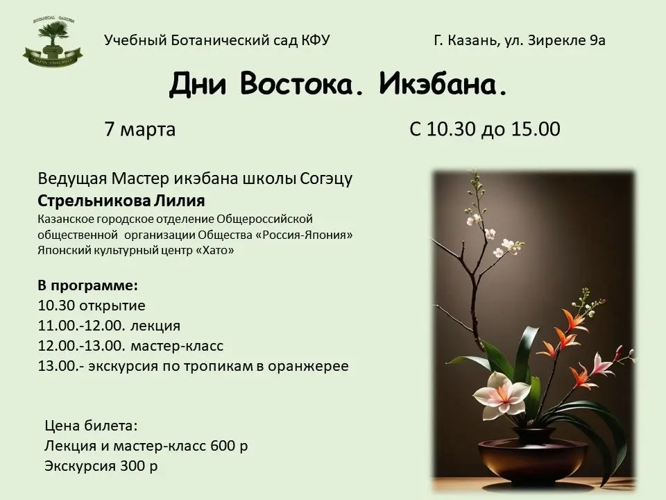 от 300 ₽Мастер-классы0Дни Востока в Ботаническом саду: Икэбана7 марта10:30 — 15:00улица Зирекле, 9Ак1от 300 ₽Купить