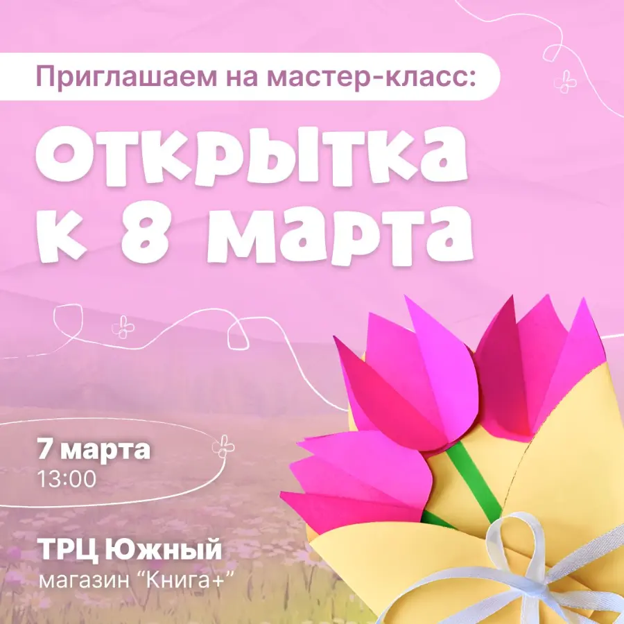 БесплатноМастер-классы0Мастер-класс «Открытка к 8 марта»7 марта13:00 — 15:00проспект Победы, 916+ летБесплатноПосмотреть