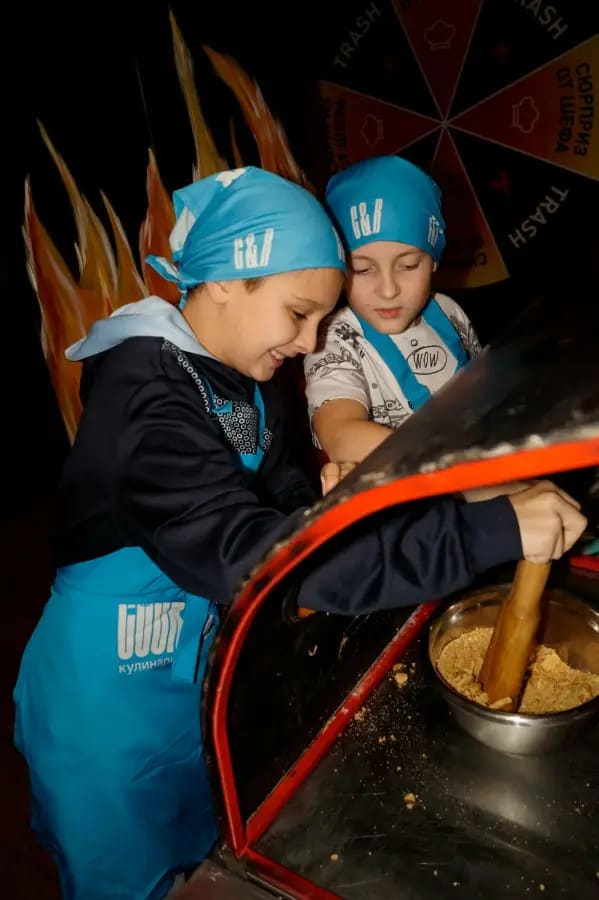 Самое динамичное и эмоциональное кулинарное шоу Казани по мотивам «Адской кухни». Это не просто мастер-класс — вы внутри настоящего квеста с испытаниями, таймерами, чёрным ящиком и криками шефа! Дети и взрослые делятся на команды, проходят задания (на скорость, точность, креатив), готовят 3–4 блюда (итальянская паста с курицей и грибами, салат капрезе, оливье, шарлотка, азиатские роллы и многое другое), соревнуются за победу, получают фото/видео и кучу адреналина. Вас ждут сценарии для детей (от 6–7 лет), взрослых, выпускных, новогодних корпоративов, дней рождения и классных мероприятий. Шефы и аниматоры мотивируют, объясняют, создают атмосферу шоу. Дети в полном восторге, родители тоже.