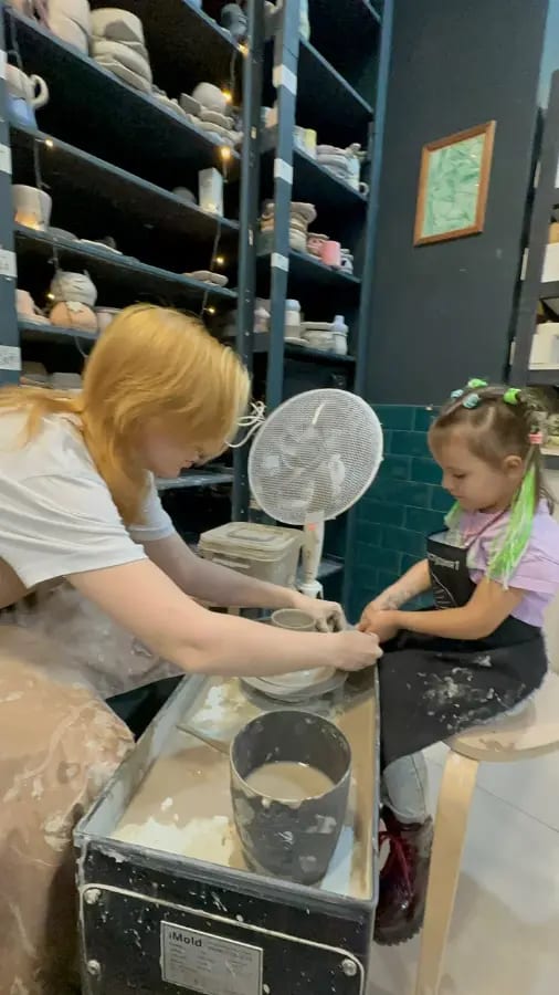 В это месте вы окажетесь внутри настоящей студии с гончарными кругами, где можно создать кружку, тарелку, вазу или фигурку! Дети и взрослые под руководством мастера работают на круге, лепят вручную, расписывают глазурью и забирают готовое изделие после обжига. Вас ждут ежедневные мастер-классы (базовый, свидание, семейный, детский), корпоративы, дни рождения, девичники и даже курсы для регулярных занятий. Дети в полном восторге от первого изделия, а родители наслаждаются уютом и атмосферой. Продолжительность: 1–2 часа на мастер-класс.