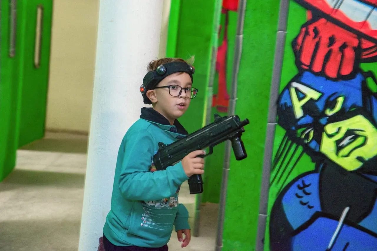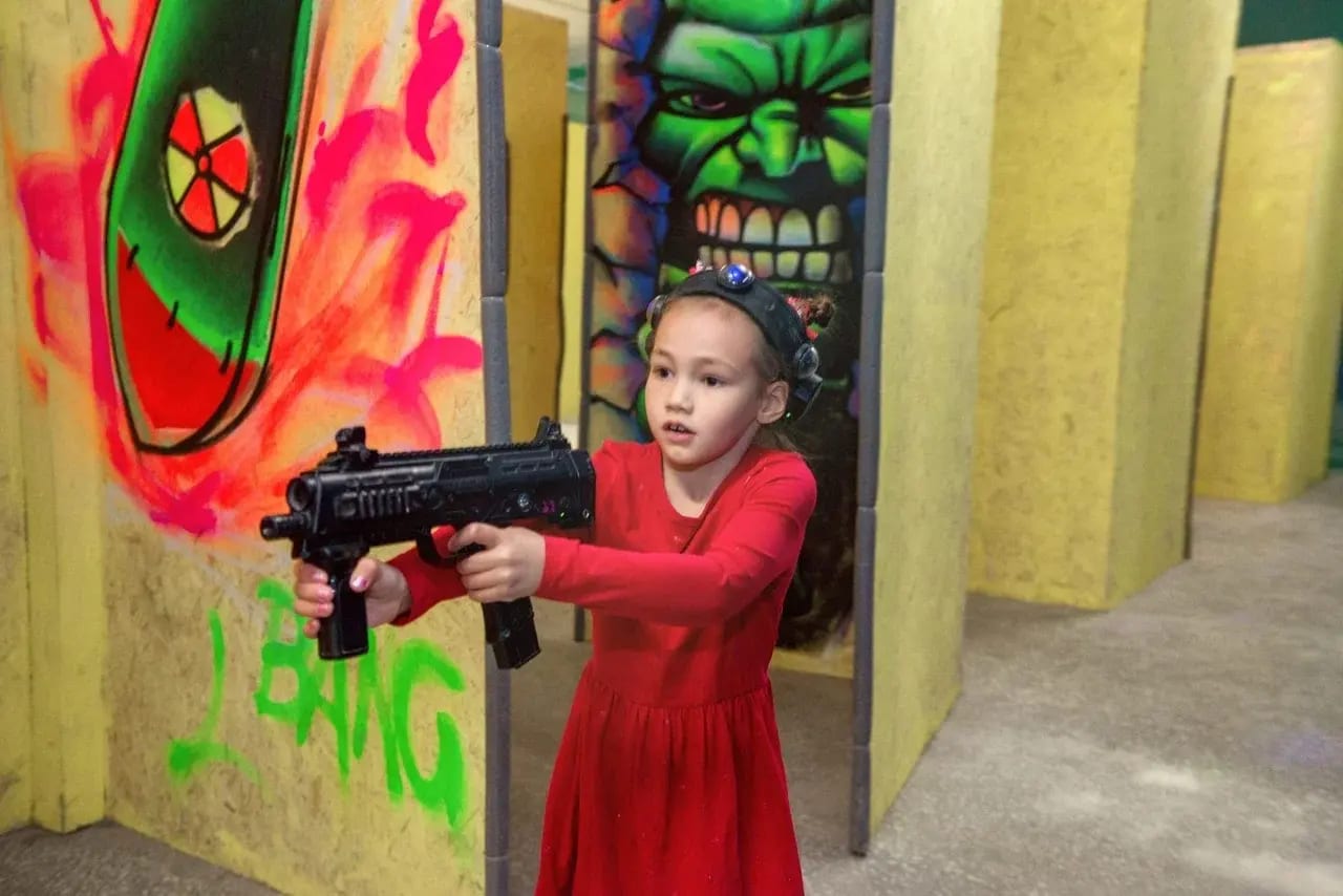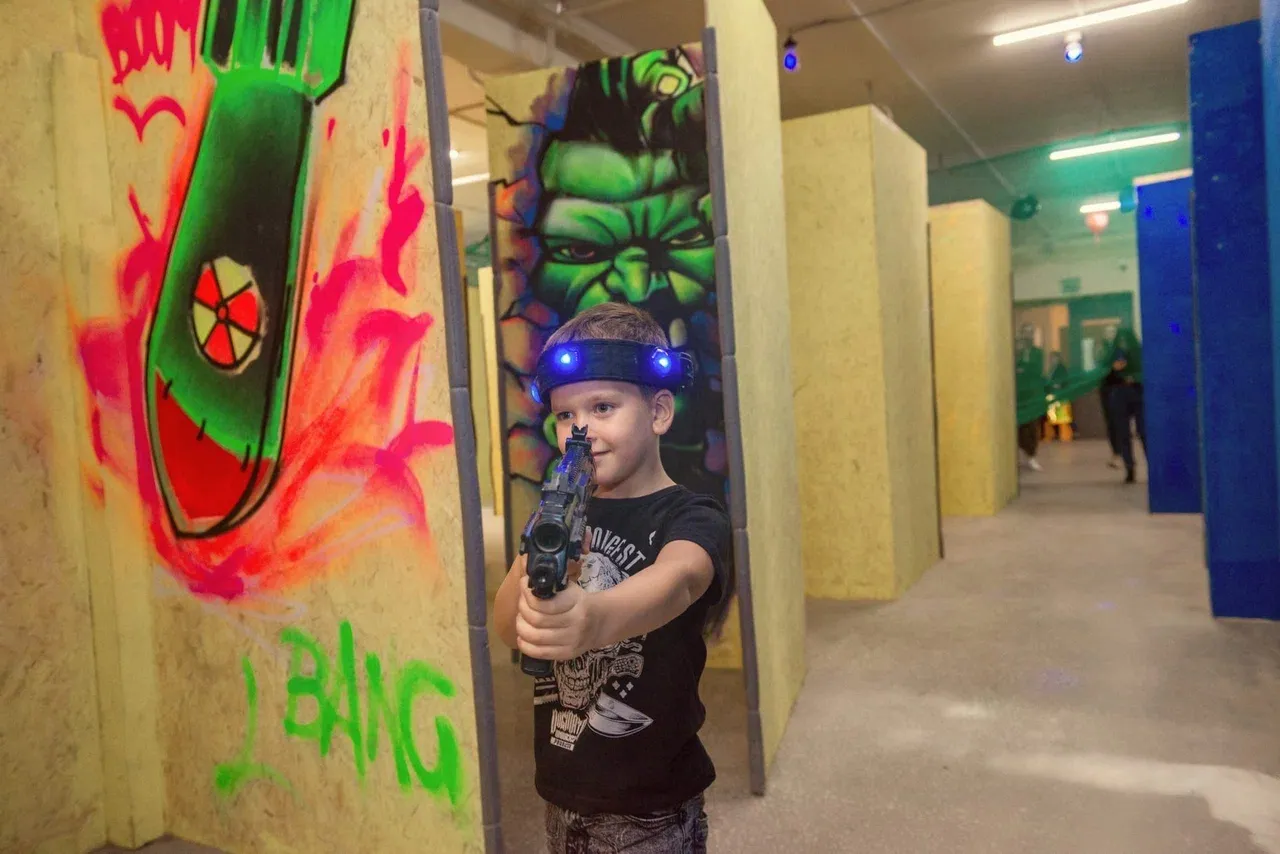 Универсальный и опытный лазертаг в Казани с 2009 года. Вы окажетесь внутри тактических арен с открытыми полигонами в лесу (деревья, укрытия, домики), крытыми лабиринтами (граффити, зомби-стиль) и теплыми площадками круглый год! Дети вместе с друзьями или семьёй делятся на команды, бегают, прячутся, захватывают точки, отстреливаются в сценариях (выживание, захват флага, миссии), используют профессиональное оборудование (незапотевающие маски, жилеты, рации, макеты оружия). Тут есть ночные игры, комбо с пейнтболом, гидроболом и скайпарком! Постановка по принципам реального тактического боя: инструкторы выдают экипировку, объясняют правила, запускают сценарии и мотивируют прямо на арене. Дети получают заряд энергии на весь день, родители тоже!