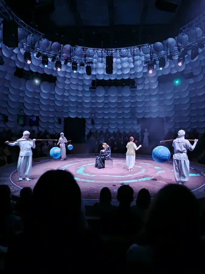 Здесь подростки и взрослые вместе с народными артистами проживают судьбы героев Тукая, Камала, Качалова, Шекспира, Чехова, Островского и современных татарских драматургов. Живая музыка (национальные инструменты + оркестр), роскошные костюмы, многоуровневые декорации и свет создают полное погружение. Постановки идут на татарском языке (синхронный перевод на русский через наушники), по мотивам классики («Банкрот», «Три сестры», «Гамлет», «Шурале») и современной драматургии. Атмосфера полная силы, гордости и эмоций. Зрители в полном восторге, родители тоже. Продолжительность: 2–3 часа (с антрактом — идеально для подростков и взрослых).