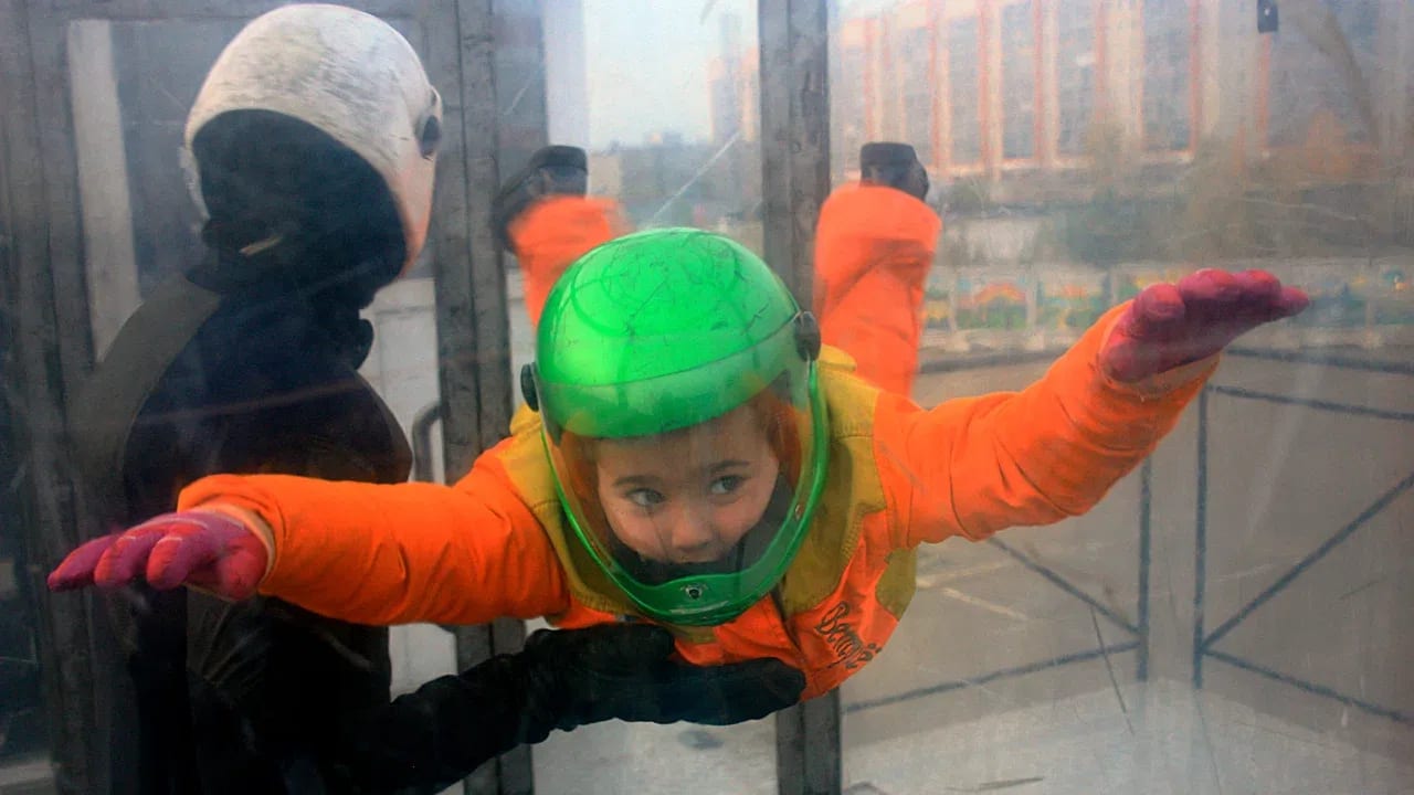 Самая доступная и семейная аэротруба в Казани. Это не просто аттракцион — вы внутри вертикального тоннеля с регулируемым потоком воздуха, где даже ребёнок парит как в свободном падении! Дети и взрослые под руководством опытного инструктора (он всегда в трубе рядом) осваивают позы, повороты, делают сальто и просто наслаждаются полётом. Вас ждет полное погружение, спецкомбинезон, шлем, очки и беруши. Все это выдается бесплатно. Технология позволяет летать детям с 3 лет и взрослым до 130 кг, безопасность на высоте — инструкторы опытные, а инструктаж игровой и понятный! Постановка по принципам профессиональной аэродинамики: сотрудники проводят подробный инструктаж (в игровой форме, позитивно и понятно), помогают в трубе, корректируют позу и делают полёт комфортным и весёлым прямо в потоке. Атмосфера полная восторга и свободы. Дети в полном восторге от «я лечу как супергерой», родители тоже.