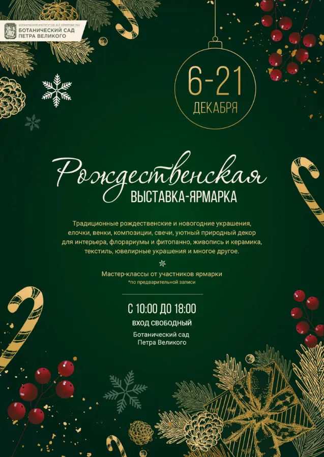 Приглашаем вас на Рождественскую выставку-ярмарку в Ботаническом саду, которая проходит ежедневно до 21 декабря с 10:00 до 18:00.