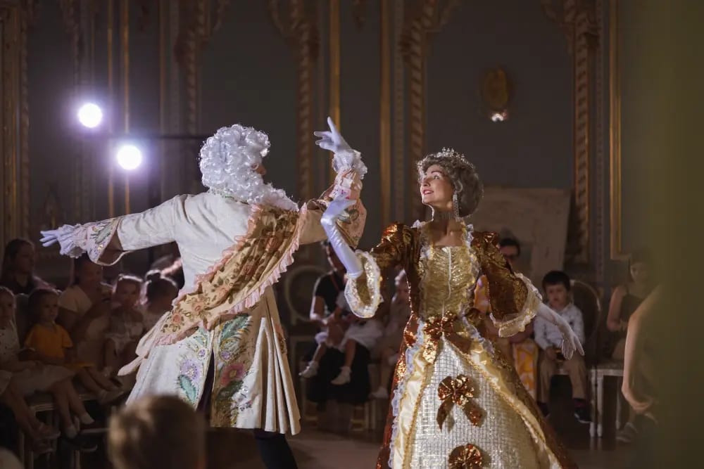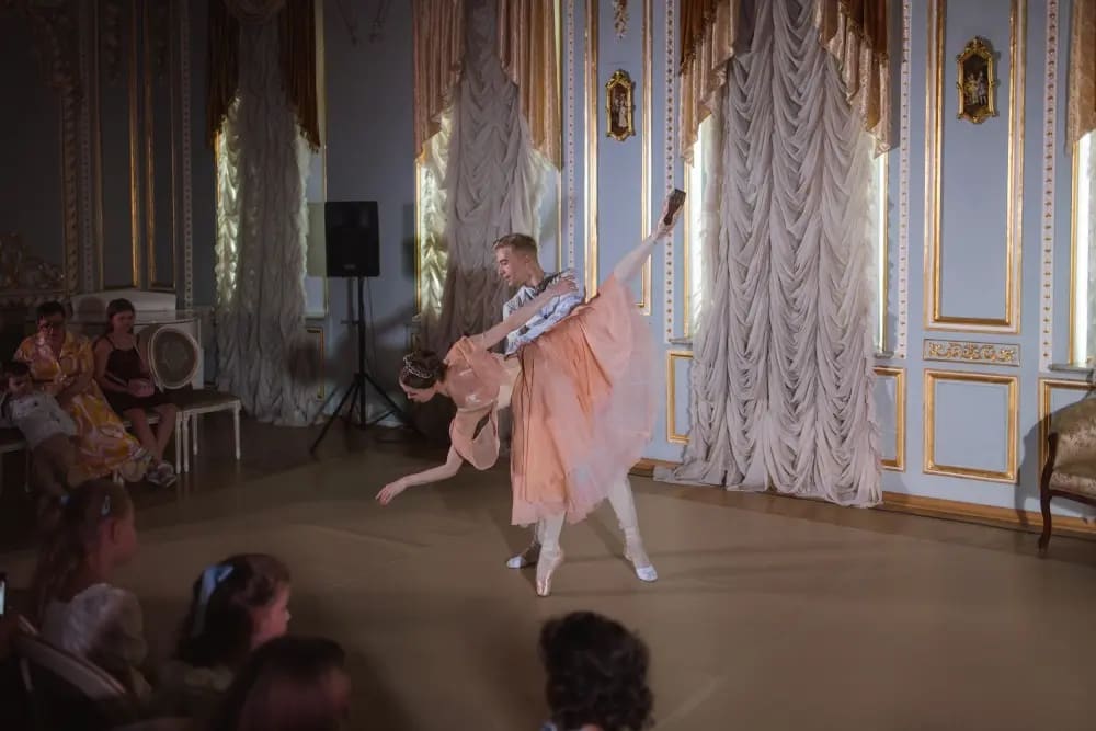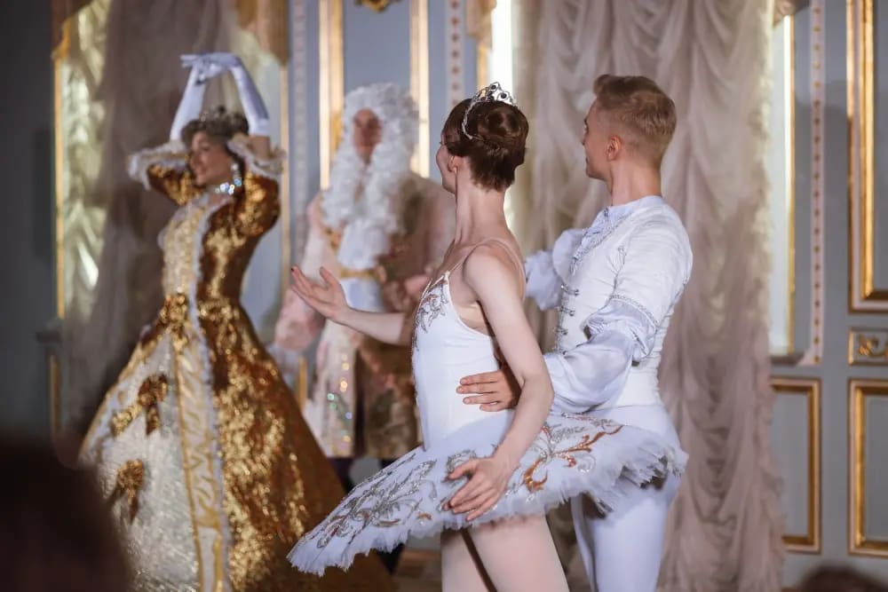 Зрителей ждёт встреча с артистами балета ведущих театров Санкт-Петербурга. Утончённая хореография Олеси Гапиенко, роскошные костюмы и парадные залы особняка создают атмосферу настоящего королевского бала — нежную, красивую и понятную даже самым маленьким зрителям.