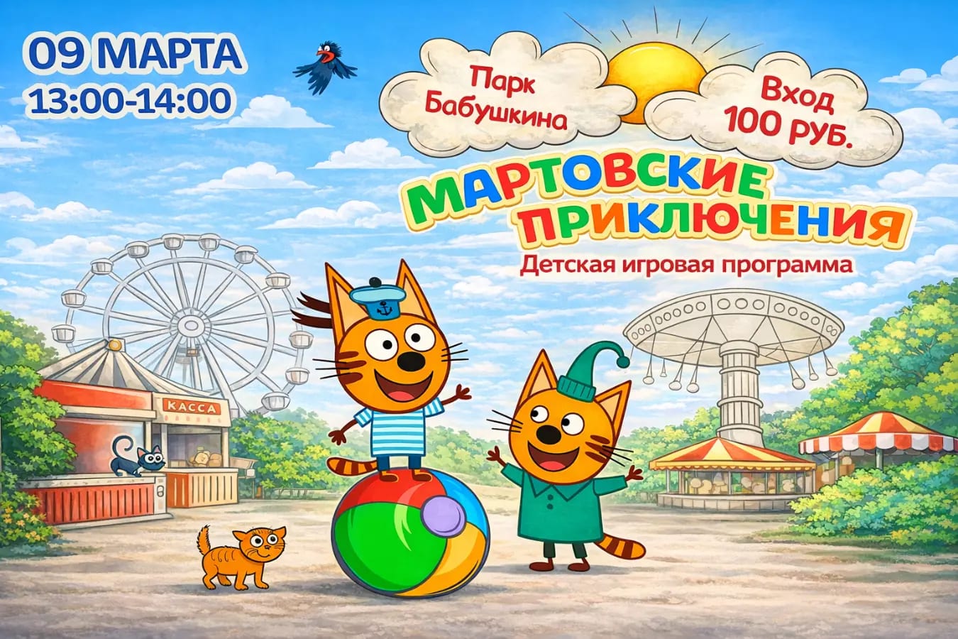 9 марта в Парк имени Бабушкина пройдёт весёлая игровая программа для детей с любимыми персонажами — Коржиком и Компотом.