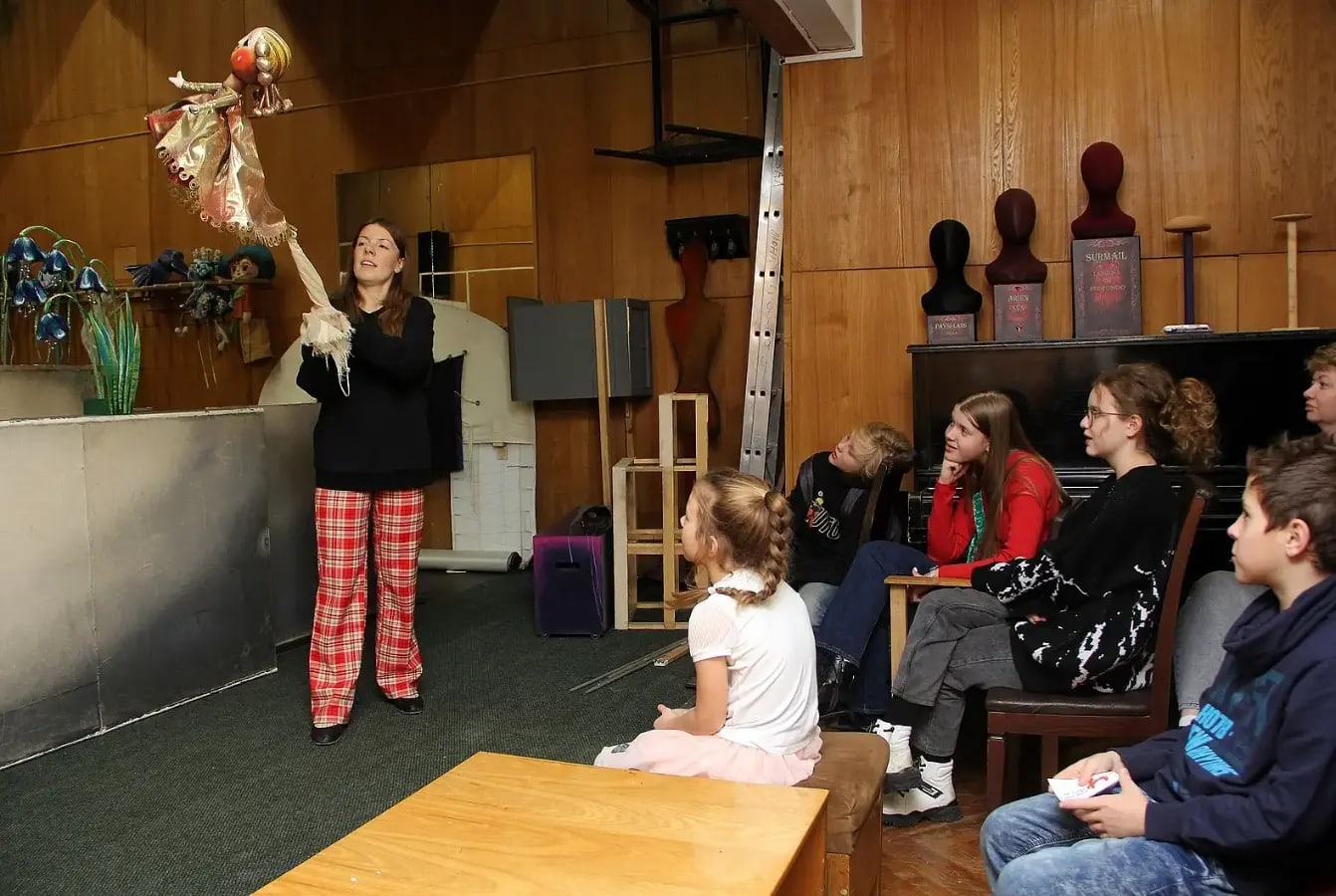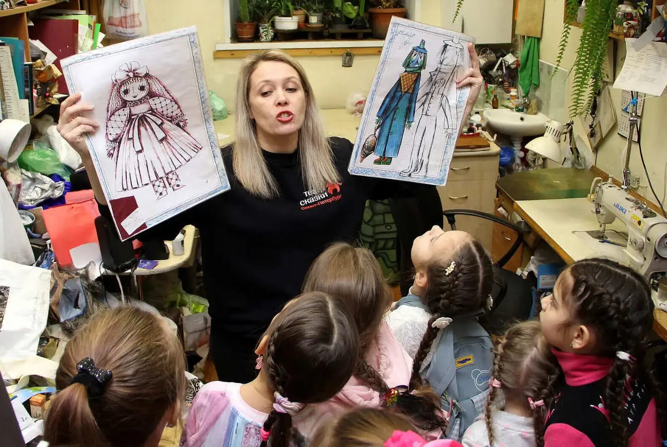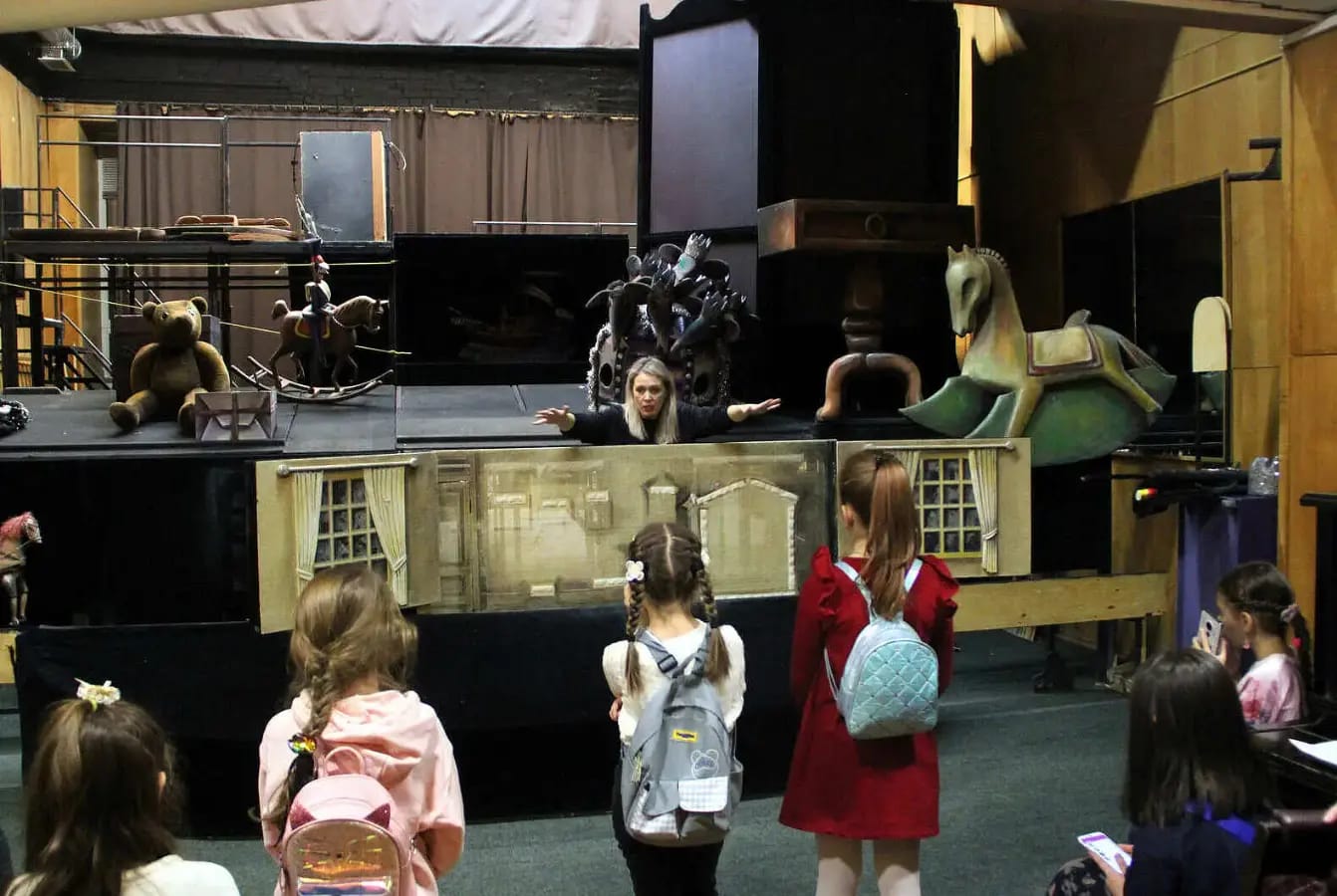 Посещение мастерских: юные гости побывают в настоящих рабочих пространствах — у бутафоров, технолога театрального костюма, конструктора кукол, декоратора, столяра, гримёра, постижёра и других мастеров.