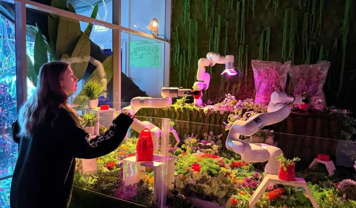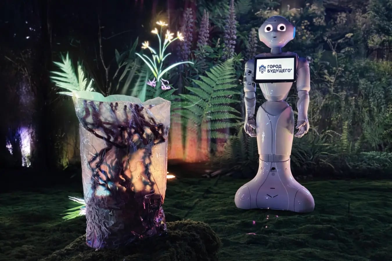 Роботы ухаживают за цветами и выращивают настоящие грибы, а на поляне можно увидеть голограммы растений Карельского перешейка.