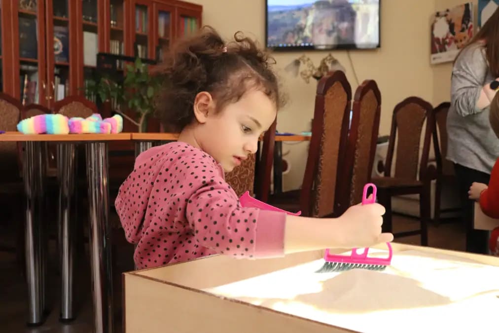 Во время встречи дети не только услышат историю, но и сами создадут образ Мышонка на песочных столах — мягкий творческий формат помогает прожить сказку через рисунок.