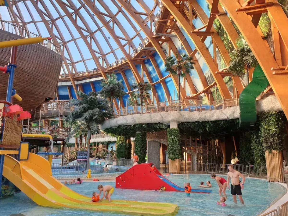 Это не экстрим-гигант — вы в уютном мире воды +28–30°C, где дети осваивают мини-горки, а взрослые плывут по "реке"!