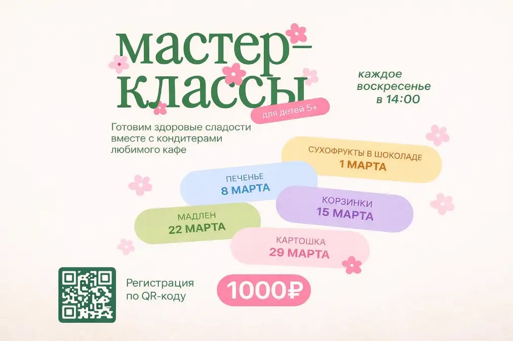 В кафе Angel Cakes проходят детские кулинарные мастер-классы, где ребята вместе с кондитерами готовят и украшают десерты из натуральных ингредиентов. На занятиях дети делают сладости по авторским рецептам без глютена и рафинированного сахара — обычно это капкейки, печенье или другие десерты, которые можно сразу попробовать или забрать с собой. Мастер-классы проходят в небольших группах, поэтому каждому ребёнку помогают на всех этапах: от смешивания ингредиентов до украшения. Родителям нравится, что дети не только весело проводят время, но и знакомятся с более здоровыми сладостями и учатся готовить их самостоятельно.