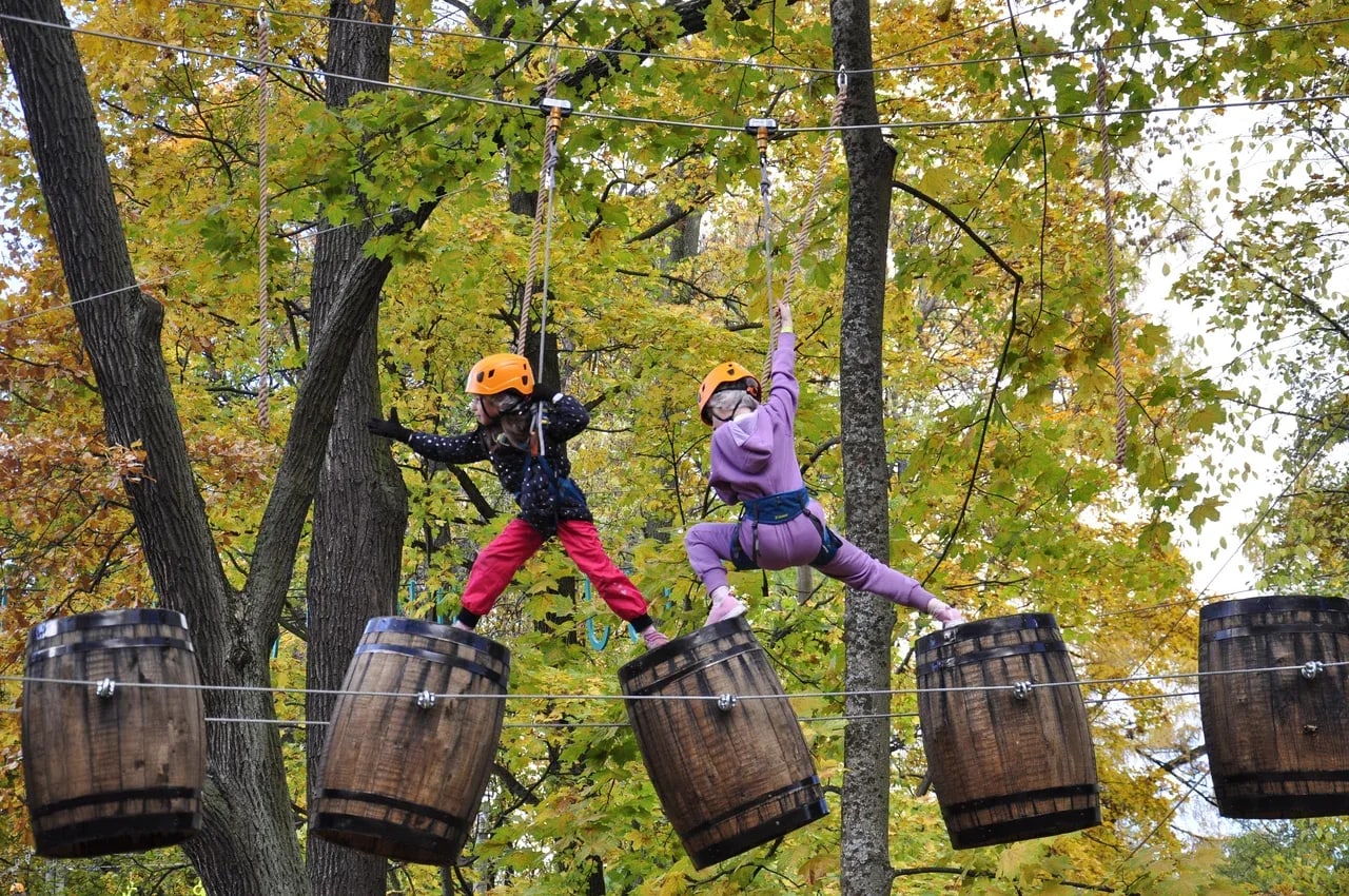 Атмосфера полная скандинавской магии и адреналина: свежий лесной воздух, виды на парк, восторг от преодоления высоты и страхов!