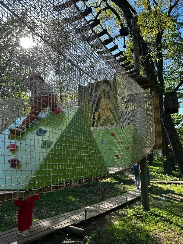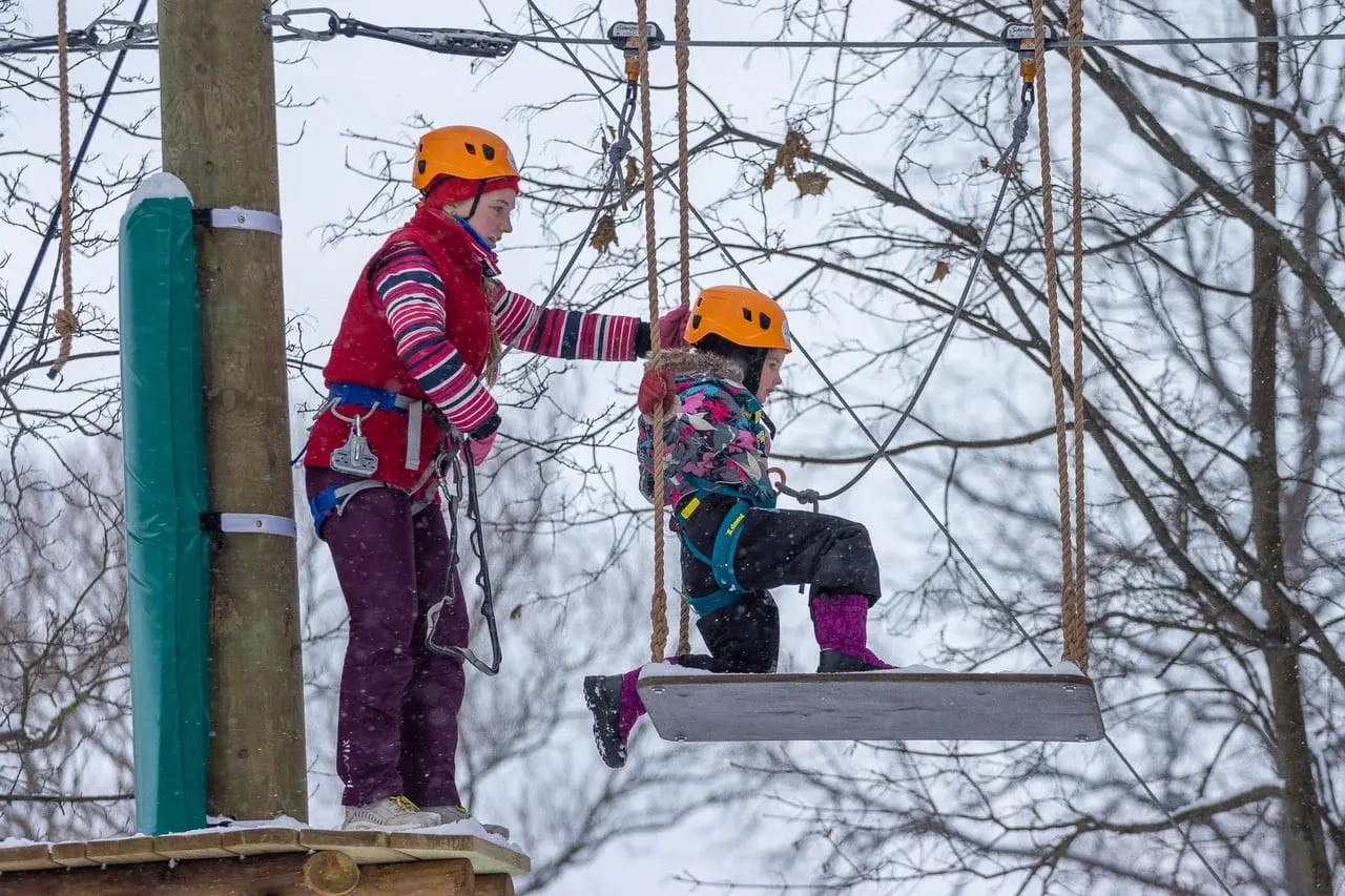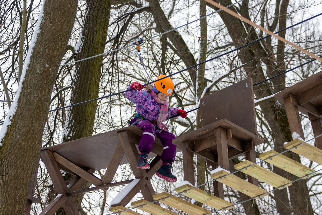 Один из самых безопасных и атмосферных веревочных парков Питера, работающий круглый год: 5 тематических трасс с 54 разнообразными препятствиями — канаты, мосты, сетки, переправы, троллеи и сложные элементы на высоте от 1,5 до 9 метров. Здесь есть отдельный полностью закрытый мягкий «Лабиринт героев» для малышей от 2 лет с сетками и мягкими задачами — безопасно исследуют как герои! Безопасно для все — непрерывная страховка Saferoller, сертифицированное оборудование, регулярные проверки. Опытные инструкторы с многолетним стажем проводят подробный брифинг, проверяют экипировку лично и следят за безопасностью. Плюс тёплый геокупол для мастер-классов (вязание узлов, роспись одежды, ловцы снов, новогодние украшения), квестов, тренировок по ловкости и праздников в любую погоду. Зимой — особая магия: снежные трассы, новогодние квесты с зимними персонажами, сюрпризами и анимацией!