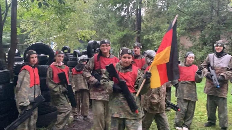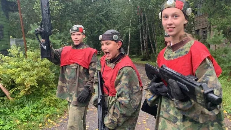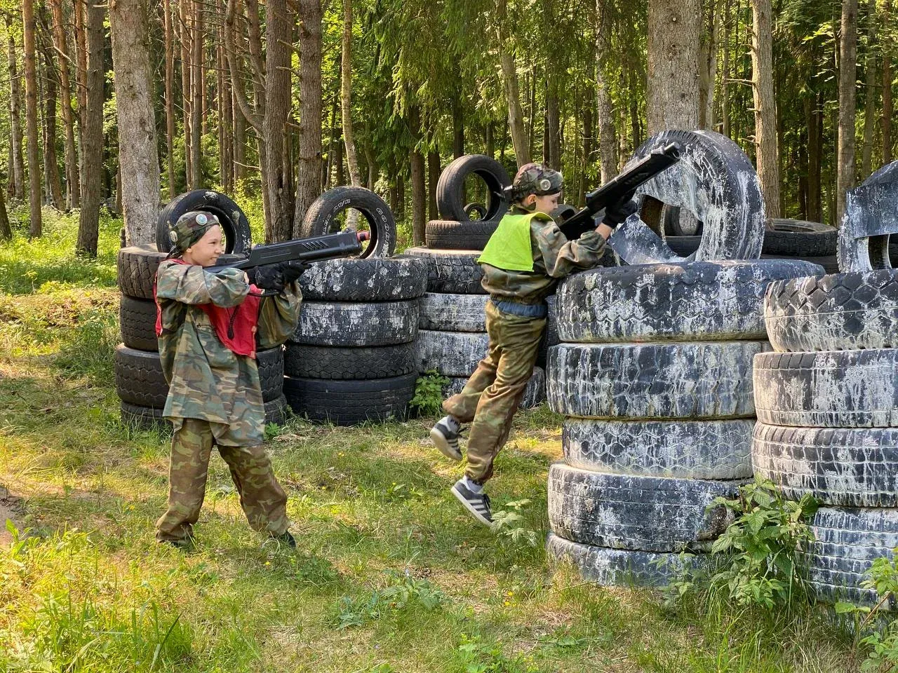 Самая мощная и нестандартная версия пейнтбола в Питере. Это не просто стрельба — вы внутри городской блокады! Дети вместе с командой обороняют/штурмуют блокпосты, отбивают позиции, выполняют задания (захват флага, уничтожение «склада», спасение «раненого», прорыв обороны), прикрывают друг друга огнём и маневрируют через дым и завалы. Под динамичную музыку и звуковые эффекты (выстрелы, взрывы, рации, сирены) звучат команды, вокруг — густой дым, вспышки, прожекторы и реалистичные укрытия. Постановка полностью погружает в тактический экшен: команды делятся на атакующих и обороняющихся, выполняют миссии с таймерами и очками. Атмосфера полная адреналина и командного духа — дети в полном восторге, родители тоже. Продолжительность: 20–25 минут основной бой + брифинг и награждение.