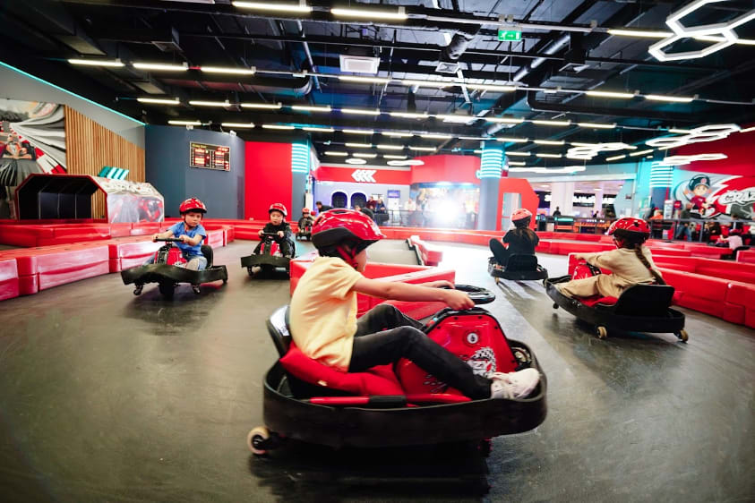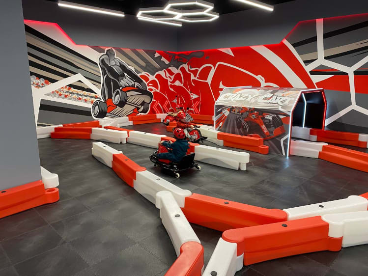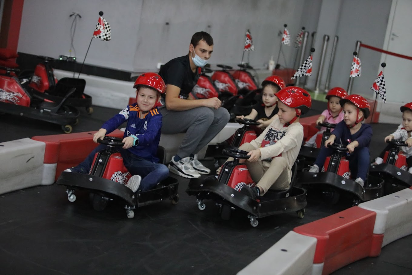 Здесь дети от 5 лет (рост от 110 см) осваивают скорость на электрокартах, участвуют в мини-гонках и развивают реакцию! Юные пилоты скользят под присмотром инструкторов, зарабатывают сертификаты и сувениры, а семьи соревнуются в командных челленджах или празднуют дни рождения с аттракционами (тир, аэро-хоккей). Все под присмотром сертифицированных инструкторов. Безопасность на первом месте: шлемы, костюмы, ремни, двухконтурные тормоза, медпункт и страховка. Атмосфера — сплошной драйв и смех. Дети в полном восторге от скольжения.