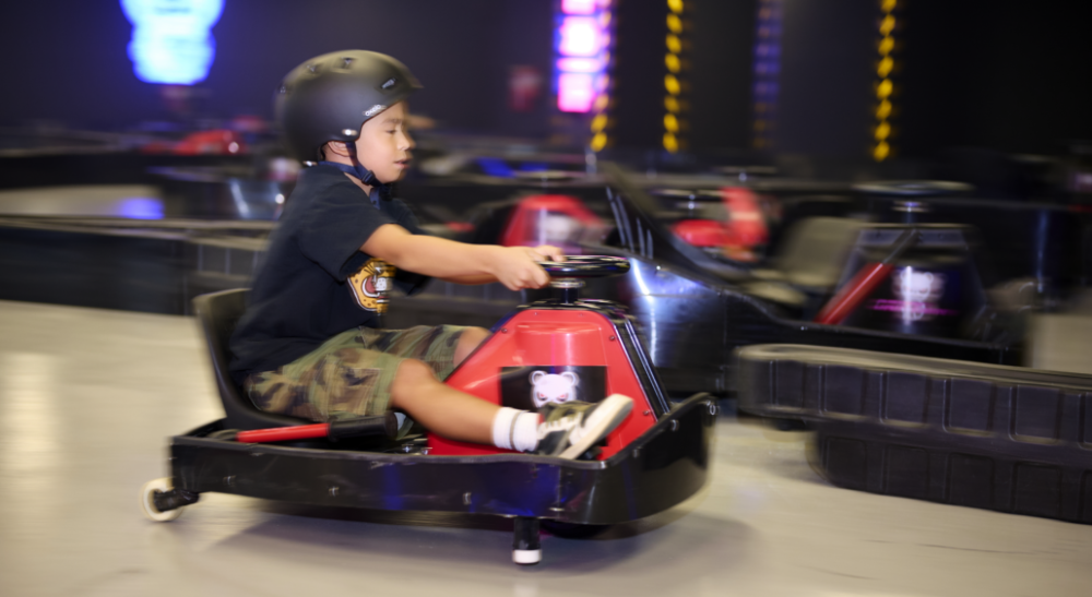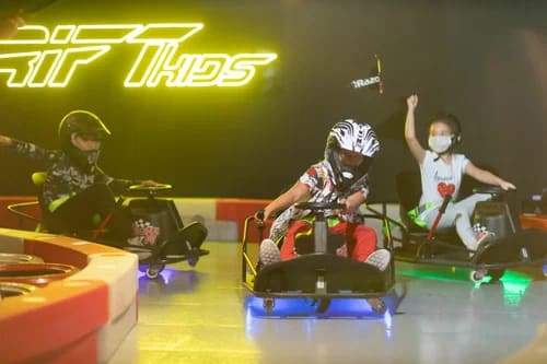 Здесь вы окажетесь на первой в России дрифт-картинг арене, где дети от 3 лет осваивают скольжение на базовых электрокартах с ручными тормозами, участвуют в мини-соревнованиях и учатся контролировать дрифт как профи! Юные пилоты стартуют на простых картах с инструкторами, зарабатывают сертификаты и соревнуются в парных заездах с родителями; семьи выбирают групповые сессии или праздники с элементами соревнований. Все под присмотром профессиональных инструкторов. Безопасность на первом месте: шлемы, костюмы, ремни, медпункт и страховка (максимум 80 кг на карту). Атмосфера — сплошной драйв и смех: дети в полном восторге от скольжения. Также есть постановка в стиле motorsport-edutainment: трасса от профессиональных дизайнеров с элементами (LED-подсветка, видеофиксация заездов, награды). Яркий зал на 30 человек с лаунжами, фокус на эмоциях и безопасности.