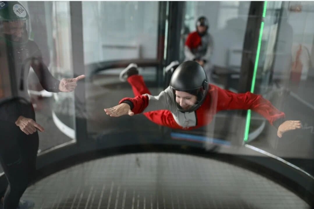Адрес: Два удобных филиала в крупных ТРК (метро рядом, парковка в ТЦ): Крестовский остров: Северная дорога, 12В (метро Крестовский остров / Зенит — 10–15 минут пешком ★ Приморский район ★ рядом Финский залив и парки) Приморский проспект, 72 (ТРК «Питерлэнд», м. Беговая — 5–10 минут пешком ★ огромный ТЦ с едой и шопингом) (удобный подъезд на авто, большая парковка в ТРК ★ круглосуточно, в любую погоду) Это первая аэротруба в Питере, которая функционирует еще с 2011 года. Вертикальная стеклянная труба с мощным потоком воздуха (свыше 200 км/ч), где вы парите как в свободном падении с 4000 метров! Полёт полностью безопасен: профессиональные инструкторы (с большим налётом) держат за руку на старте, учат управлять телом, выдают экипировку (комбинезон, шлем, очки, беруши), снимают на GoPro. Есть страховка. Температура +20…+25 °C. За 15 минут сжигается до 1000 ккал — эмоции и тренировка в одном!