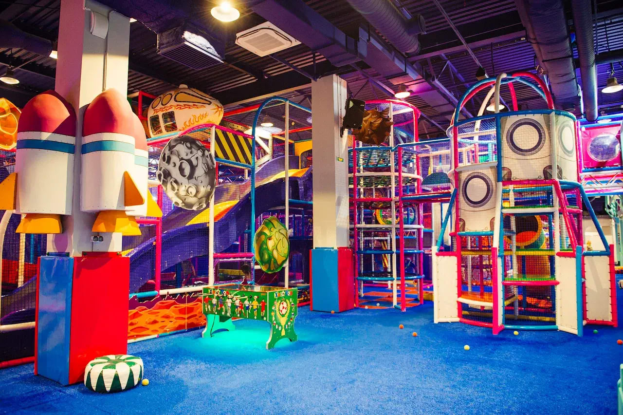Самый динамичный и нестандартный семейный парк в Питере: это не просто игровая зона — вы внутри настоящего детского города приключений! Дети (и родители) покоряют огромный игровой лабиринт с горками, прыгают на тарзанке и пневматической подушке с высоты, сражаются в аэрохоккее, скатываются на сумасшедших горках-ватрушках, играют на мини-футбольном поле и баскетболе, ныряют в поролоновый бассейн с батутами, осваивают детский скалодром и тир, стреляют из воздушных пушек. Под весёлые саундтреки — аквагрим, мастер-классы, анимационные программы и даже специальные шоу вроде "Азотного шоу" или квестов с Шерлоком Холмсом. Современный подход: зоны для малышей с мягкими играми, семейные фотографы и кафе для перекуса — всё от ведущих развлекательных брендов Петербурга в просторном зале ТРК. Атмосфера полная энергии — дети в полном восторге от свободы движения, родители хвалят за удобство (многие говорят, что это лучше обычных ТЦ-игровых комнат!).