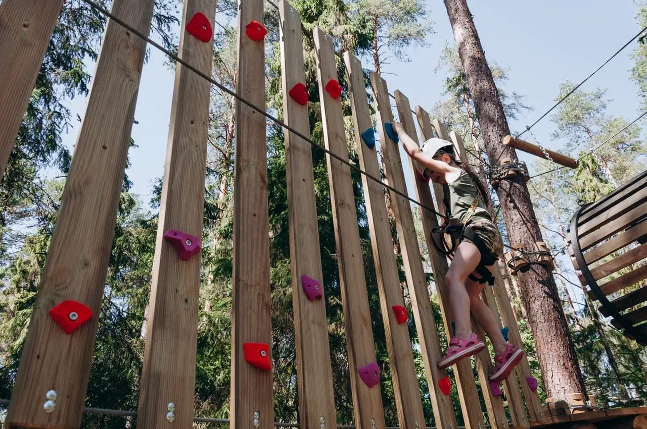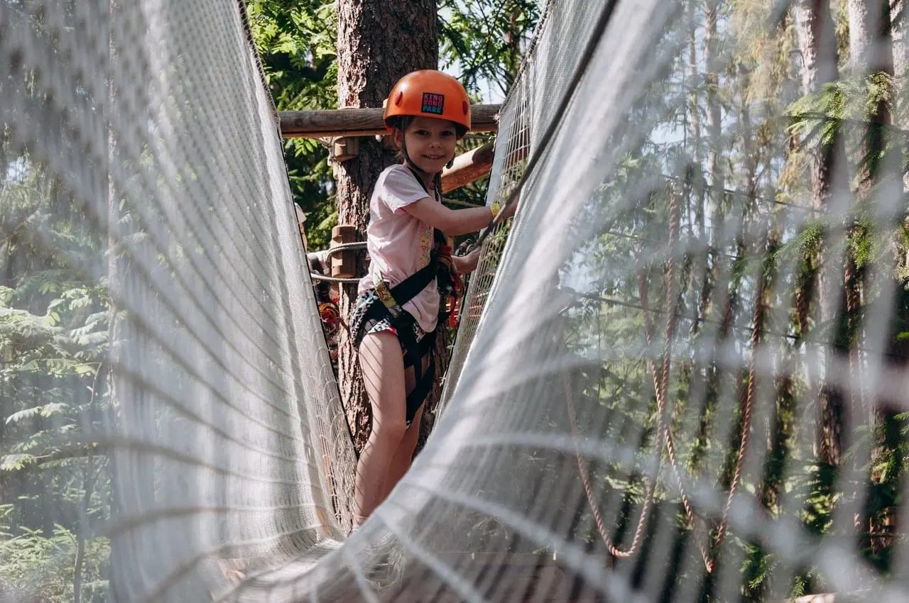 Закрыт на межсезонье. Сеть уютных сезонных веревочных парков с трассами на любой вкус: специальные семейные Light-трассы, Семейные 1 и 2 (высота 2–5 метров, 14+ увлекательных этапов с мостиками, сетками, качелями и переправами — идеально для первого посещения и детей от 7–10 лет), а также более сложные маршруты для подростков и взрослых с троллеями, канатными спусками и вызовами на ловкость. Всё с системой непрерывной страховки, профессиональной экипировкой, обязательным подробным инструктажем и опытными инструкторами — безопасность для всех возрастов, даже новичков! Парки построены с уважением к природе, в тихих живописных местах, где можно совместить лазание с отдыхом у воды.