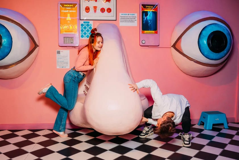 Это необычный и познавательный музей чудес в Питере. Вы встретите живое пространство с более чем 64 уникальными интерактивными экспонатами, где всё можно трогать руками! Дети проводят настоящие эксперименты: разгибают «неразгибаемый» металл, катаются вверх по наклонной плоскости, меняют пол и потолок местами, ловят молнии в бутылке, проверяют скорость реакции, силу хвата, слух, зрение, обоняние и осязание. Оптика, механика, электричество, магниты, звуковые и световые эффекты — наука превращается в волшебство! Ежедневные экскурсии (12:00, 14:00, 16:00, 18:00) и научные шоу (крио с сухим льдом, химическое, тесла с молниями, азот-шоу). Безлимитное время пребывания. Дети не устают, исследуют сколько угодно!