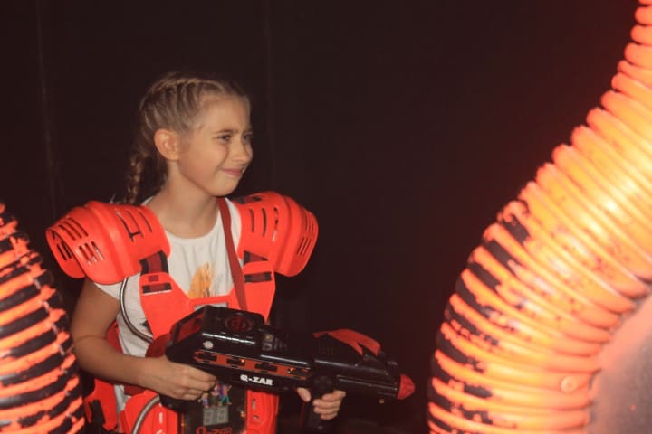 Q-Zar — это высокотехнологичная командная игра, где вы чувствуете себя джедаем в межгалактической битве! Арена — яркий футуристический лабиринт 350 м² с неоновыми огнями, энергичной музыкой, лазерными эффектами и профессиональными укрытиями (перестраивают каждые пару лет для новых тактик). Лучшее оборудование: бластеры стреляют невидимыми лазерными лучами, жилеты с датчиками (красные vs зелёные команды), точная статистика попаданий. Безопасно на 100% — никаких синяков, краски или боли. Арена проводит российские чемпионаты и международные турниры! Дети и взрослые делятся на команды, выполняют миссии: поражайте противников, захватывайте базу, набирайте очки. Ведущие-инструкторы проводят инструктаж, следят за игрой и создают драйв.