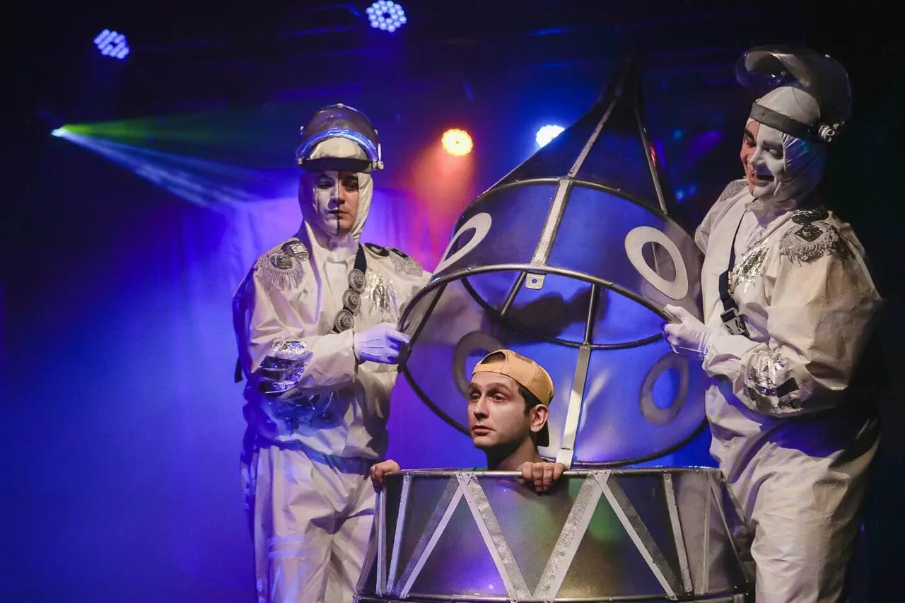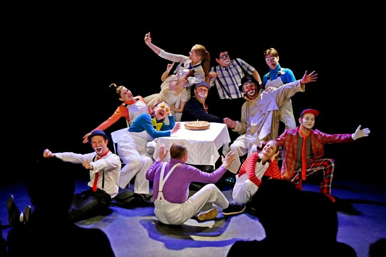 Театр основан в 1989 году Александром Плющ-Нежинским (неизменный художественный руководитель) на базе студии пантомимы. Это мир больших башмаков, клетчатых штанов и «чёрной комедии» — юмор через абсурд и лёгкую грусть. Лауреат «Золотого клоуна» от Юрия Никулина, «Золотого софита» и других премий. Театр является организатором ежегодного «Смешного фестиваля» и уличных хэппенингов («День яйца», «День рождения Деда Мороза»). Репертуар разнообразный: интерактивные детские шоу, комедии по Зощенко и Аверченко, спектакли абсурда, музыкальные феерии. Зал камерный (около 70–100 мест), актёры работают в шаге от зрителей — полное погружение!