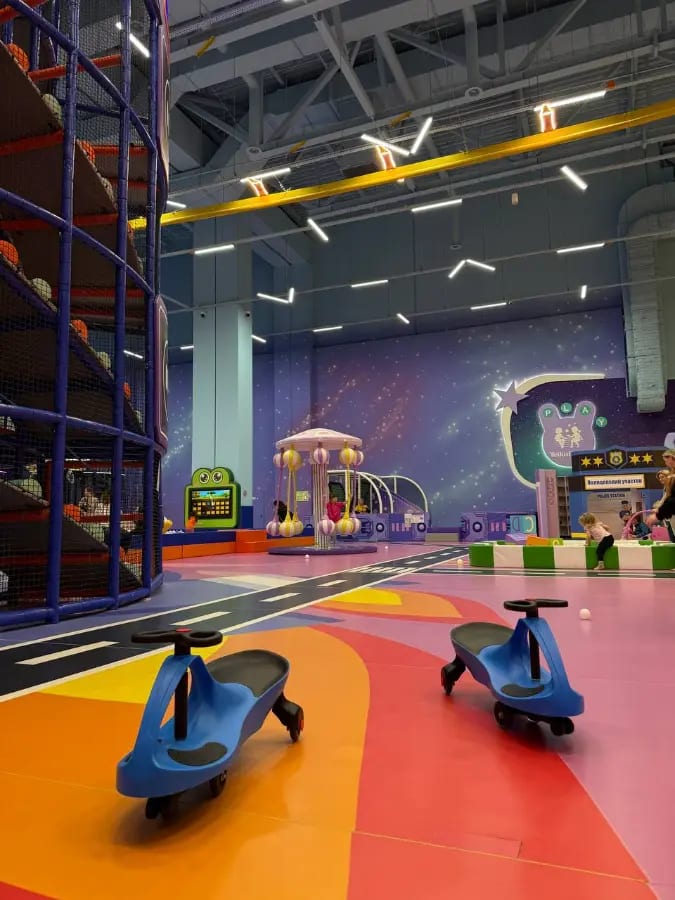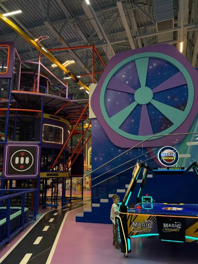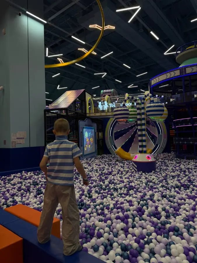 Самый масштабный семейный активити-парк в России теперь в СПб: целых 5700 м² безлимитных аттракционов и зон! Не просто игровая — вы в мире приключений: зиплайн над парком, боулинг для всех возрастов, огромные батуты, скалодромы, лабиринты, зоны для малышей с мягкими элементами, игровые автоматы, фестивали пород (шутка, но есть тематические зоны). Плюс лекторий с мастер-классами, аниматоры с играми и шоу, розыгрыши призов. Кафе с детским меню, ресторан авторской кухни, собственная кондитерская — вкусно и полезно. Атмосфера — сплошной праздник и энергия, дети в восторге от свободы, родители от комфорта (многие говорят, что это лучше обычных ТЦ-игровых, здесь всё на уровне!). Постановка в современном формате: аттракционы и активности среди посетителей, в просторных павильонах ТРК. Полная магия для любителей активного отдыха — дети развиваются, играя, родители расслабляются. Продолжительность: открыт с 10:00 до 22:00 (идеально — приходите на 3–5 часов или весь день, не устают даже малыши благодаря зонам отдыха) Идеально для: - первого знакомства с активити-парками (0+, с 1 года платно, но интересно с 3–4 лет благодаря разнообразию) - создания семейного приключения с играми и едой детей, которые любят движение, спорт, приключения и сладости - альтернативы обычным паркам — здесь нет скуки, только динамика, развитие и веселье Расписание на декабрь 2025: Ежедневно, включая праздники Сеансы: 10:00–22:00 (без перерывов) (январь 2026 — то же, следите за анонсами на сайте или в соцсетях) Цены (в кассах): Взрослый (от 18 лет) — бесплатно Детский полный день (будни Пн–Чт) — 2000 ₽ Детский полный день (Пт) — 2200 ₽ Детский полный день (выходные/праздники) — 2500 ₽ Для многодетных и именинников — скидки (1600–2000 ₽, с документами) Дети до 1 года — бесплатно