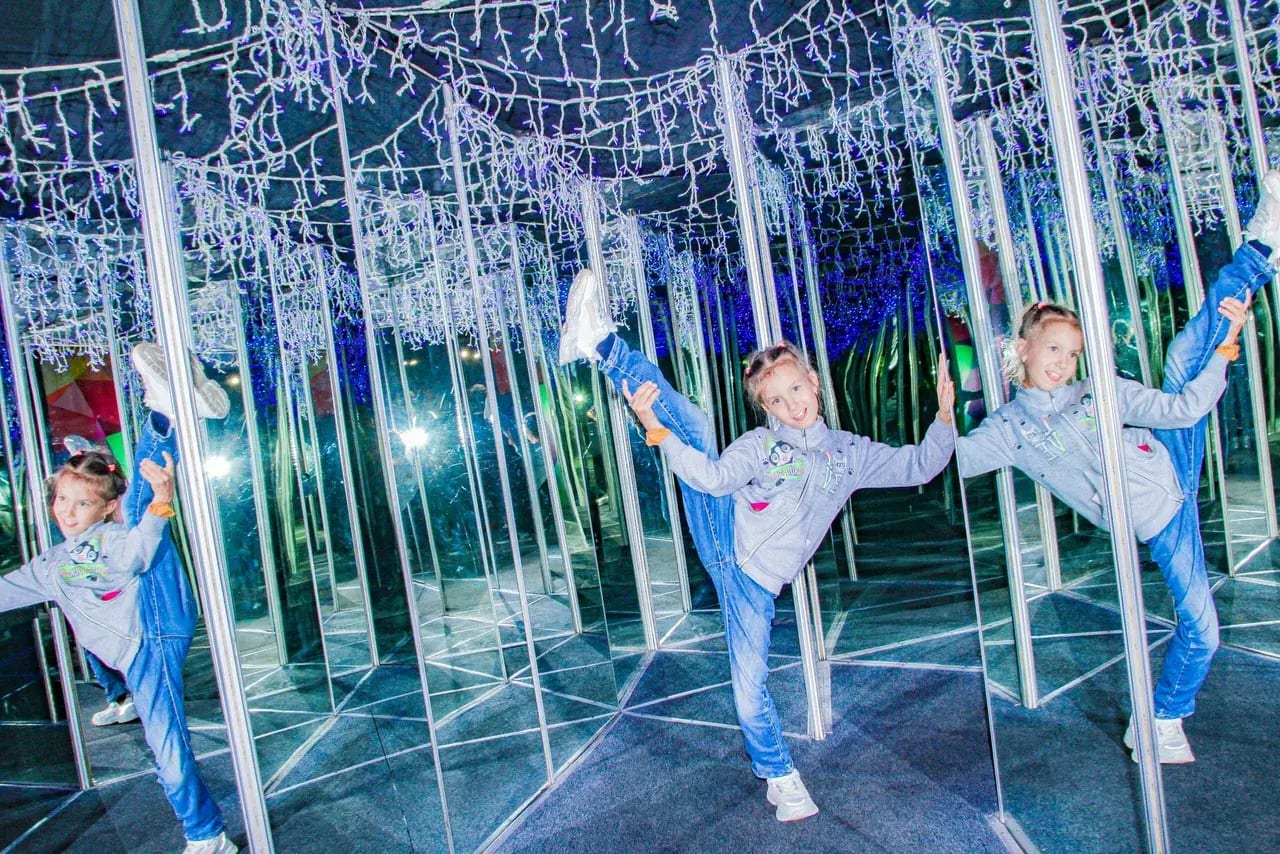 Самый стильный оптический лабиринт в центре Питера (площадь ~300 кв.м с бесконечными зеркалами): это не просто аттракцион — вы внутри умной головоломки, где подсветка меняет пространство, создавая десятки отражений и иллюзию вечного блуждания! Семьи проходят лабиринт вместе, активируя пространственное мышление: вытягивайте руки вперёд, не спешите — каждый поворот обманывает глаз, а под конец кажется, что выхода нет. Под цветными огнями — зоны для эпичных фото с бесконечными копиями себя, как в "Матрице" или "Алисе в Зазеркалье", без аниматоров, только чистая магия оптики и логики. Атмосфера — сплошной wow-эффект и смех от "потерянных" в зеркалах, семьи в восторге (отзывы: "дети визжали от восторга, фото — огонь для Инсты!"), родители тоже (многие говорят, что это круче музеев — интерактивнее и короче!).