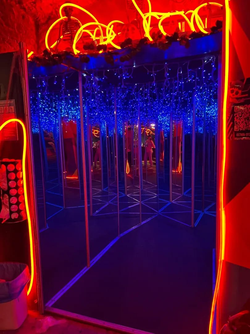 Это не просто аттракцион — вы внутри умной головоломки, где подсветка меняет пространство, создавая десятки отражений и иллюзию вечного блуждания!