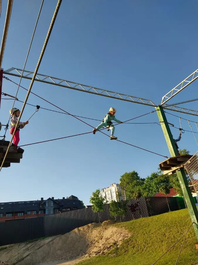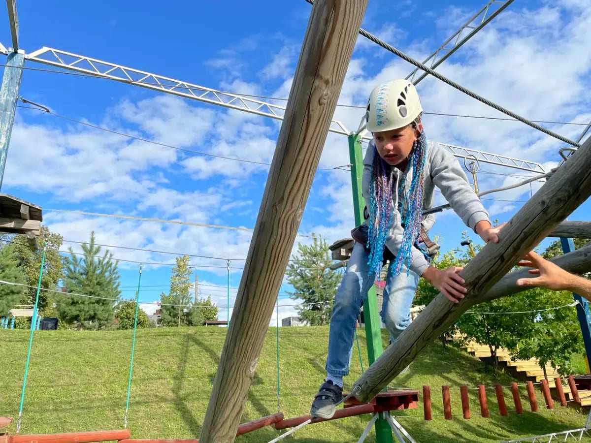 Закрыт на межсезонье. Один из самых доступных и надёжных верёвочных парков в Питере: 36 этапов различной сложности на двух трассах (нижняя — для новичков и младших, верхняя — с большим вызовом и троллейным спуском), общая протяжённость 650 метров с разнообразными переправами, мостами, канатами и уникальными заданиями для развития координации и смелости. Всё построено с профессиональной экипировкой Petzl, армированными канатами толщиной 16 мм, непрерывной страховкой и под постоянным наблюдением опытного инструктора. Безопасность на высшем уровне, никаких рисков даже для новых посетителей!