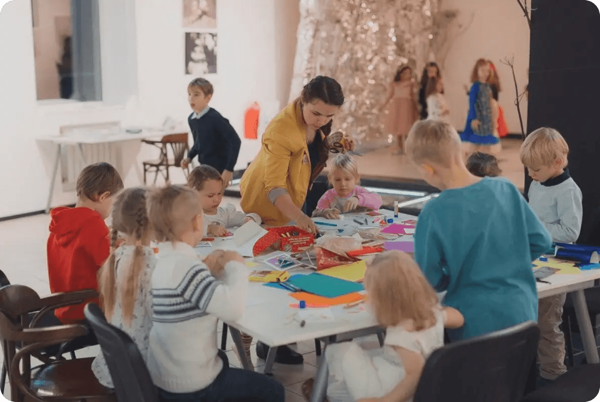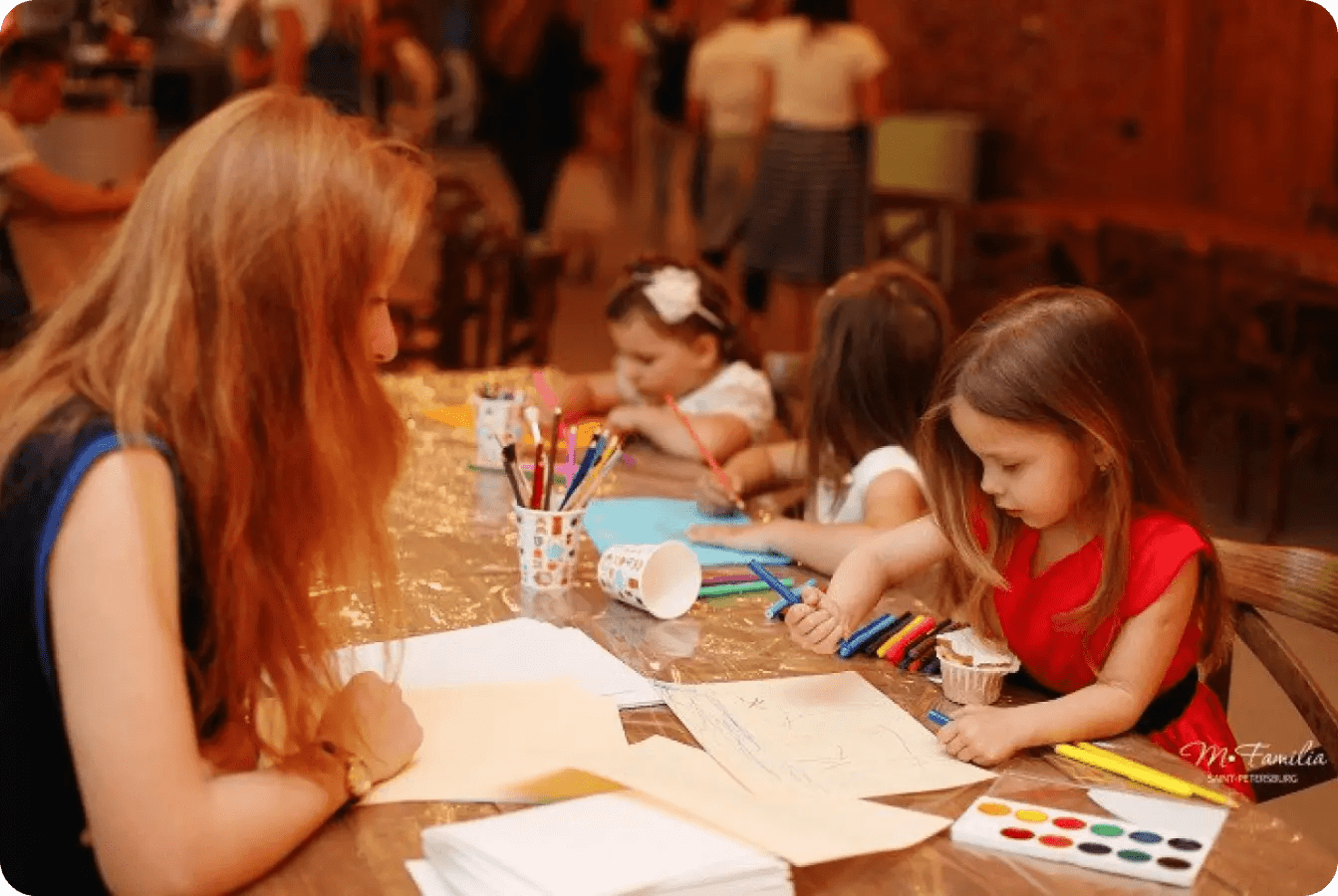 Это не спектакль, а живые мастер-классы и арт-вечеринки — вы приходите и под руководством художника создаёте собственную картину или арт-объект за 2–3 часа. Форматы разнообразны: картина на холсте, акварельный скетч, роспись одежды, интерьерная живопись, изготовление свечей и флористические/интерьерные композиции. Подходит как для взрослых, так и для детей — обычно занятия доступны от ~ 3 или 6 лет. Программа учитывает особенности каждого возраста Занимаются рисованием, лепкой и аппликацией. Детки развивают художественный вкус, учатся самостоятельно придумывать и доводить до конца начатое дело, тренируют мелкую моторику. Малыши 3-5 лет Занимаются рисованием и моделированием, развивают фантазию и пространственное мышление. Ребята от 10 и старше Развивают усидчивость, фантазию, изучают жанры изобразительного искусства, основы перспективы и объемного изображения предметов. Дети от 6 до 9 Групповое занятие• Группа 3-5 лет = 45 минут, 6-9 лет = 1,5 часа • Все материалы включены в стоимость • Группы от 2 до 8 человекИндивидуальное занятие• Продолжительность 1,5 часа • Все материалы включены в стоимость • Преподаватель занимается только с вами